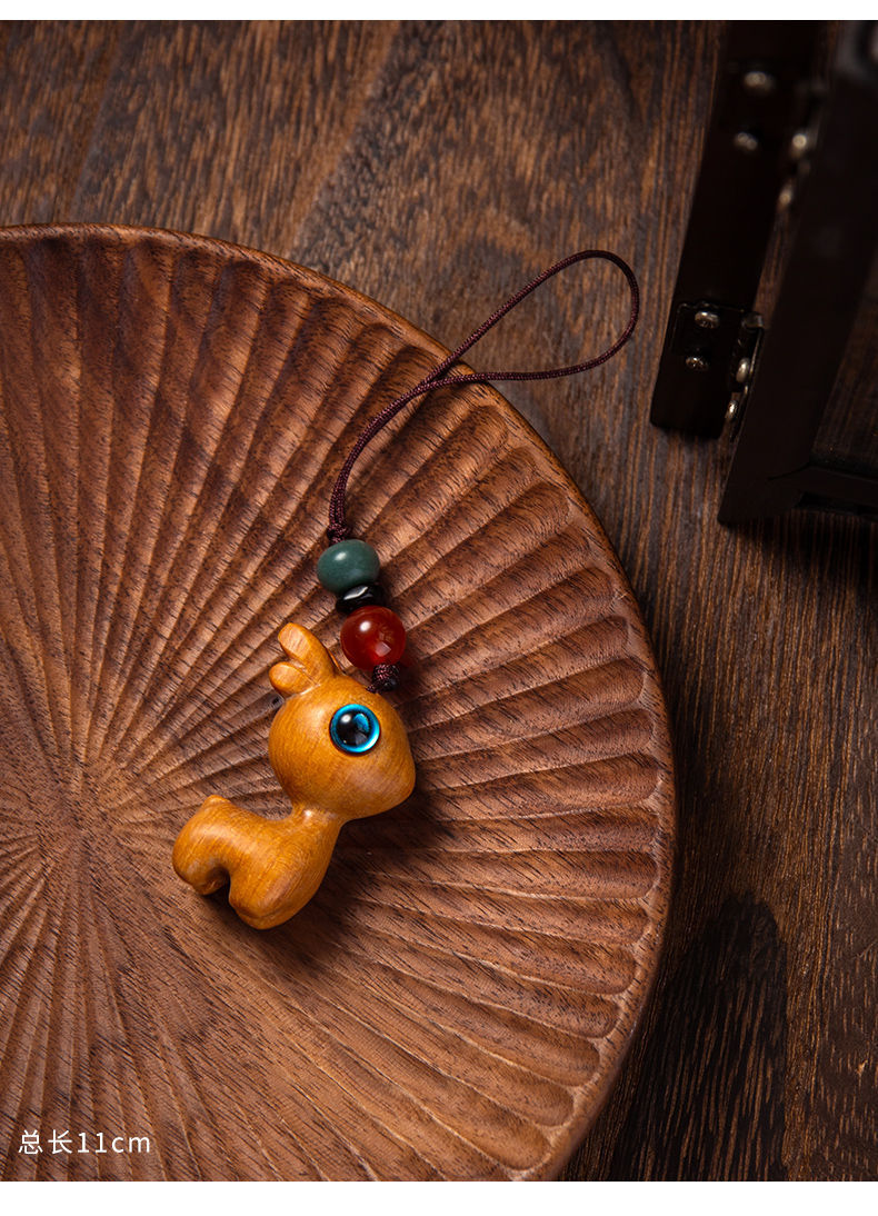 十二生肖崖柏木彫り創意実木自動車キーホルダー萌えストラッププレゼント国風アクセサリー