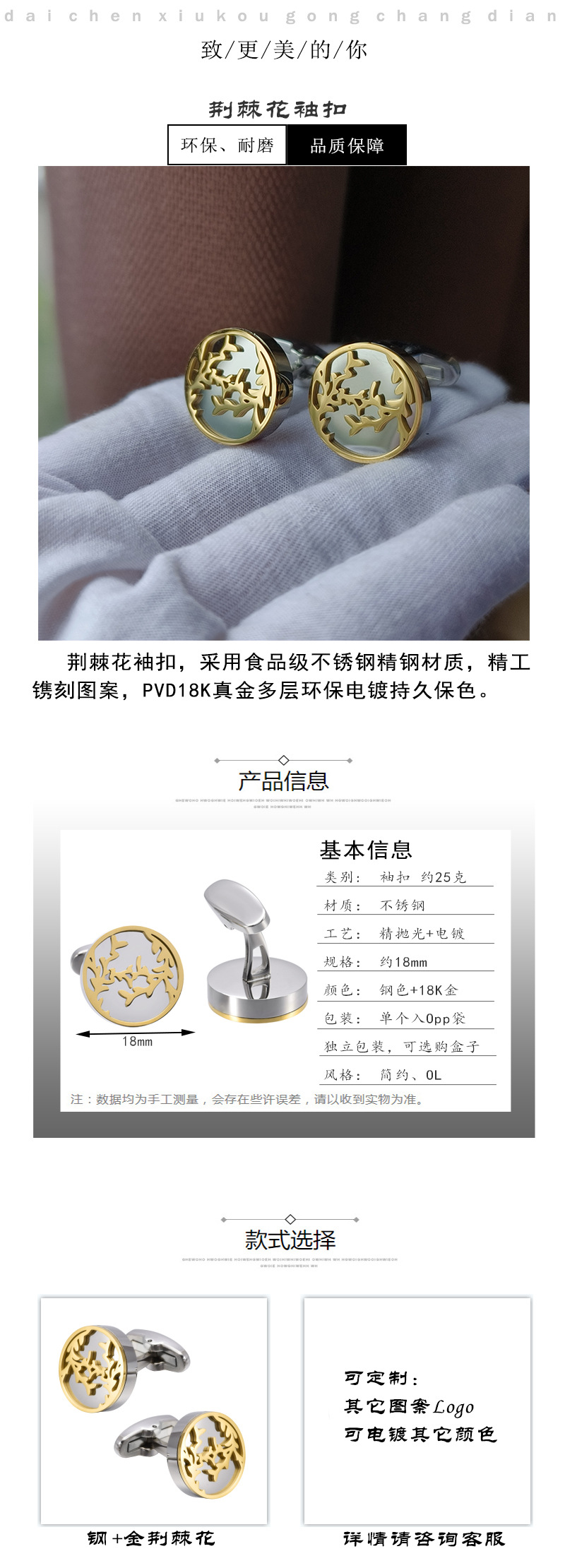 ステンレスの間の金荊棘花のフランス式のカフスは男性の高級な18kの金のカフスを掛けて国境を越えた対外貿易の源を掛けます。