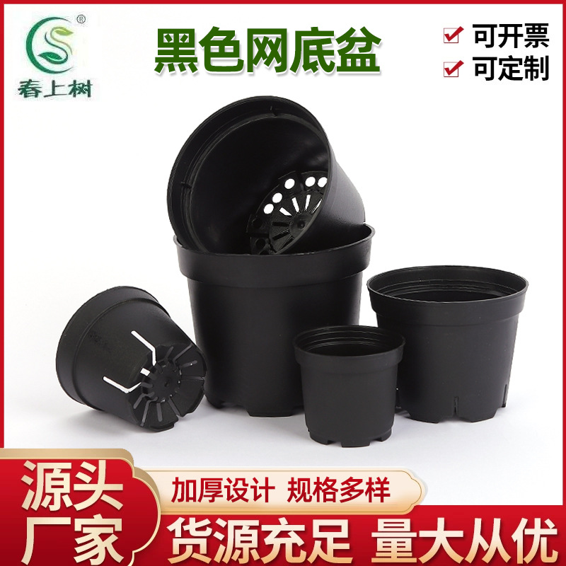 厂家批发塑料黑色网底塑料育苗花盆兰花多肉基地种植盆黑色网底花