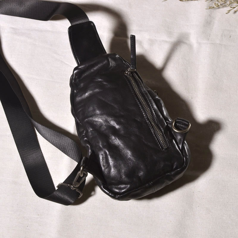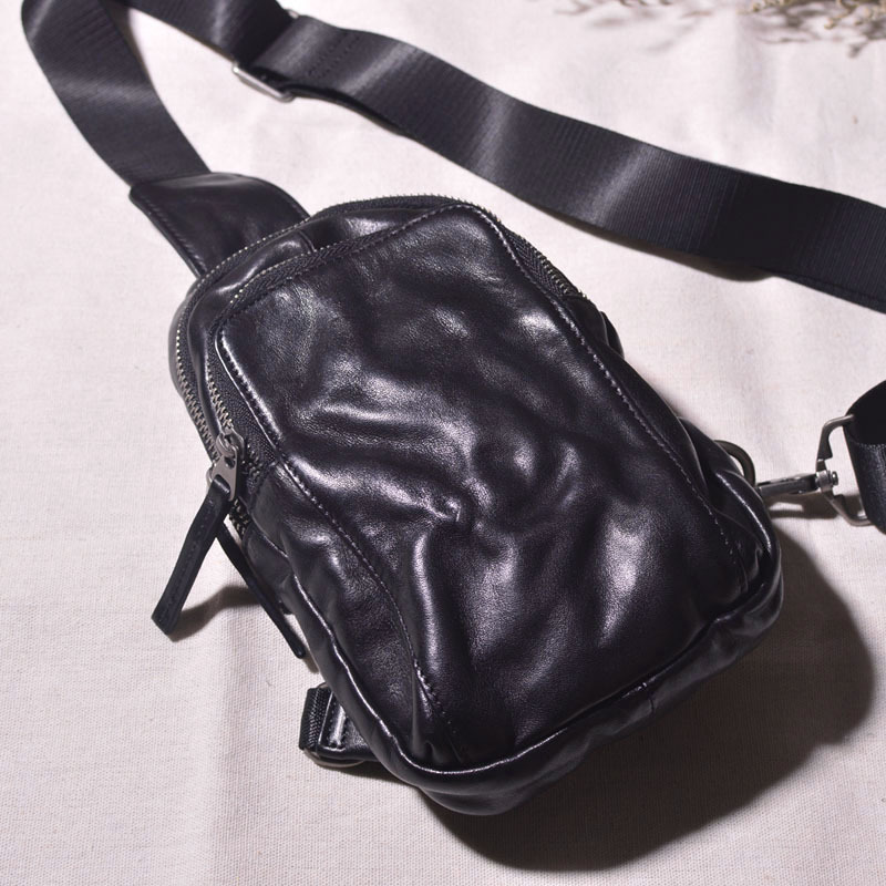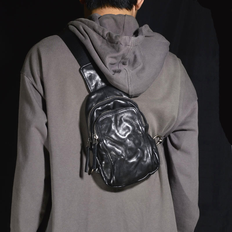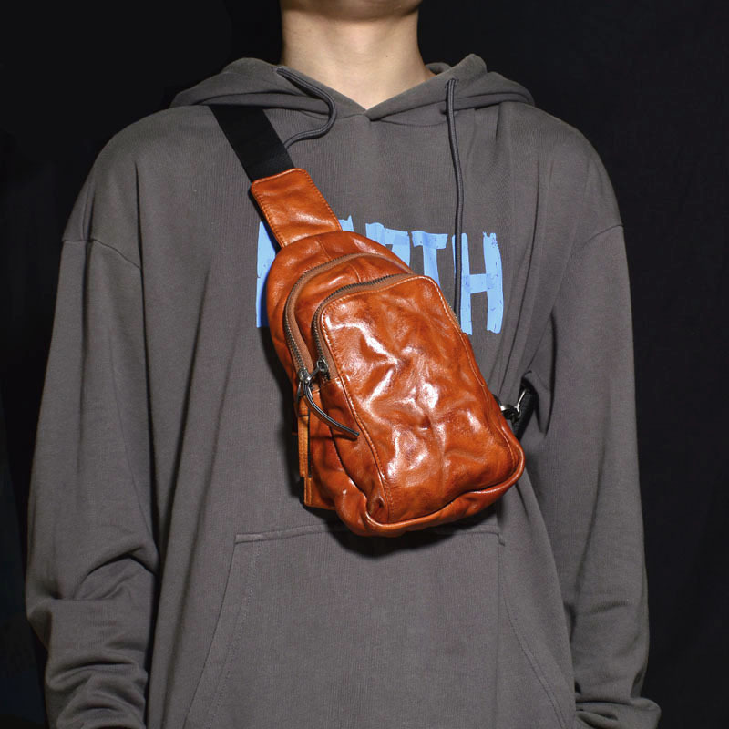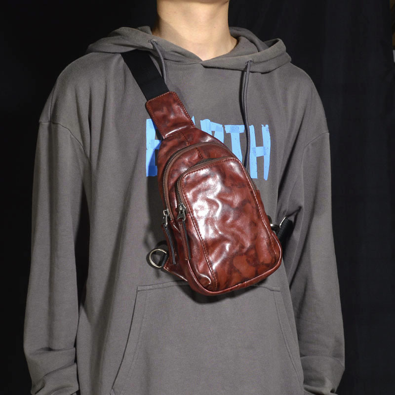 男性の斜め掛けの本革の復古のしわの包みの胸の包みの個性の通勤のカジュアルな百合の小さい大衆の携帯は騎乗の包みを収納します
