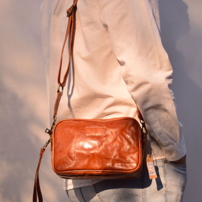手作りのレトロな頭の層になめした牛革のショルダーバッグ