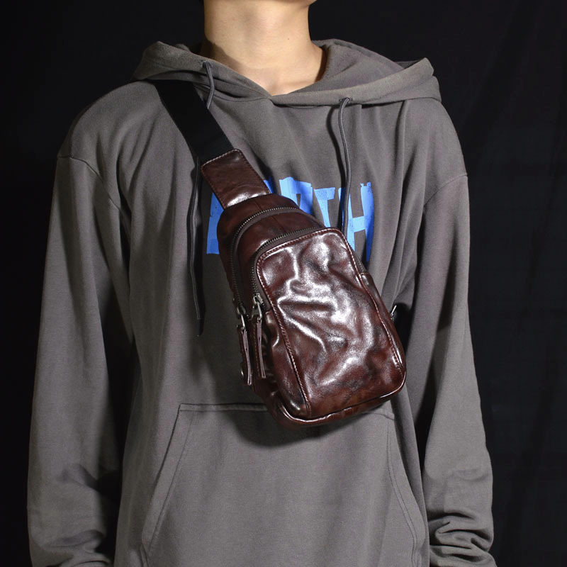 本革の胸の包みの男性の復古の簡単な植なめの頭の層の牛革のショルダーバッグの日本のレジャーの斜めなショルダーバッグの潮
