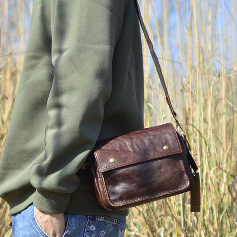 日系郵便便カバンレトロな質感通勤レトロ本革男性カバン斜めがけショルダーバッグ小方カバンなめし牛革シングルショルダー
