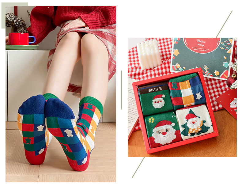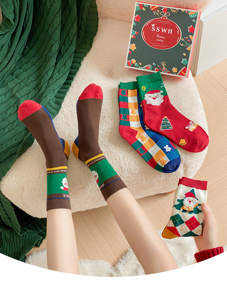 小红书圣诞袜礼盒可爱搞怪袜女中筒袜ins潮日系卡通条纹跨境代发
