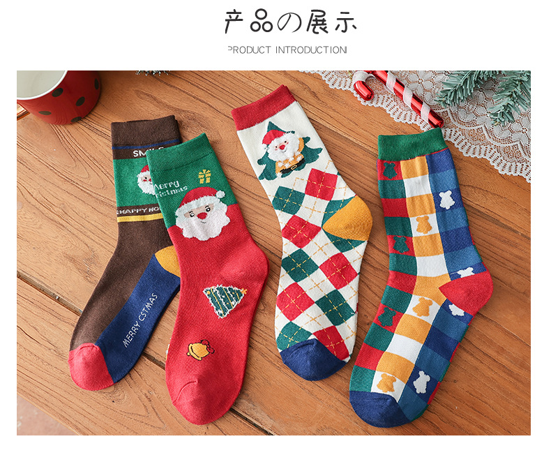 クロスボーダークリスマス靴下男女ソックスかわいい漫画ins潮ストッキング秋冬綿潮牌街頭赤