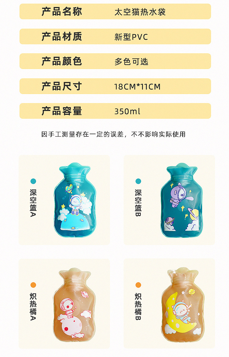 恒温携帯高密度PVCかわいい小清新保温湯たんぽ暖かい手宝注水が持続する