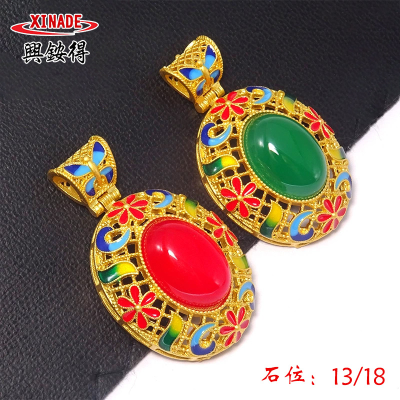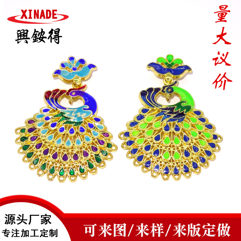国潮風景泰青孔雀ガーネットネックレスペンダント民族風滴油エナメル色セーターチェーン部品