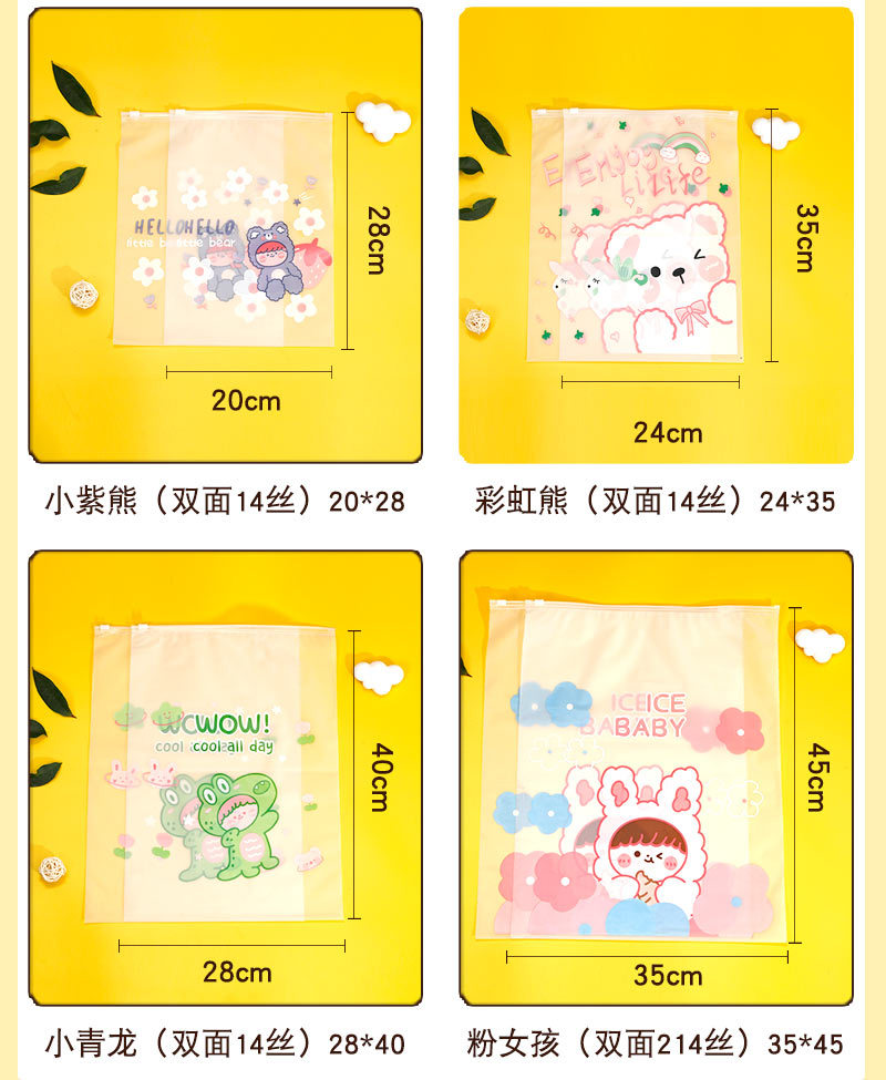 PEつや消しジッパーバッグ靴下パンティーパッケージ韩国インスタ风かわいい漫画おもちゃアクセサリー収纳自己密封バッグ