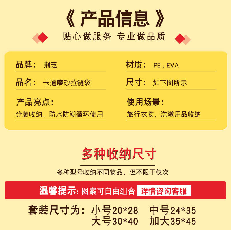 eva卡通磨砂拉链袋 pe加厚透明服装收纳袋印刷图案衣服塑料包装袋