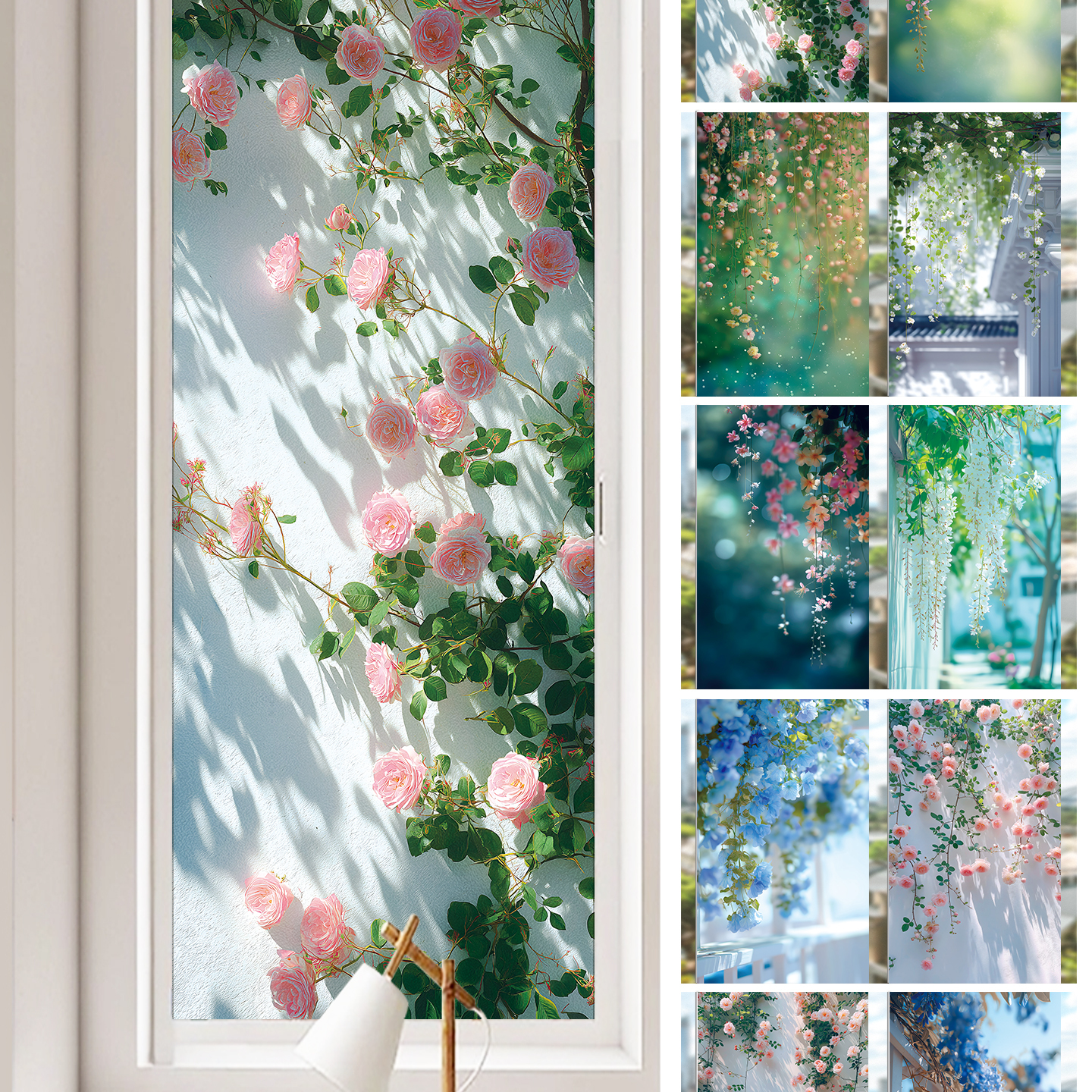 静電無糊すりガラスフィルムトイレ熱売芙蓉花覗き防止フィルム光透過不透明ガラスシール