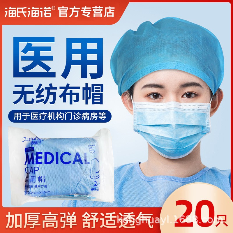 海氏海諾医療用平頂帽子20匹/袋使い捨て防護不織布防塵医師看護師の頭カバー