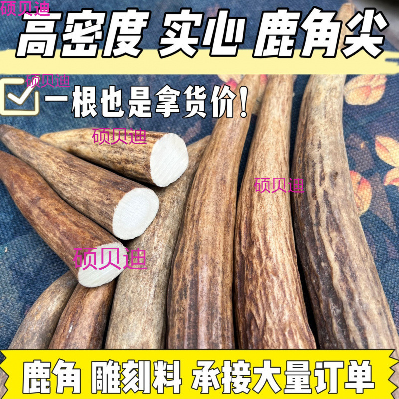 鹿角尖雕刻料实心高密度尖刀柄扳指料把玩根付鹿角磨牙棒打粉
