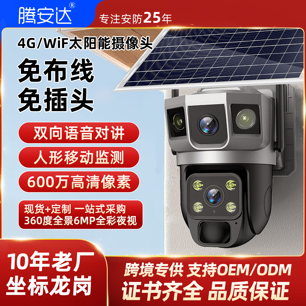 腾安达4G太阳能监控器摄像头360度无死角手机远程室外高清夜视
