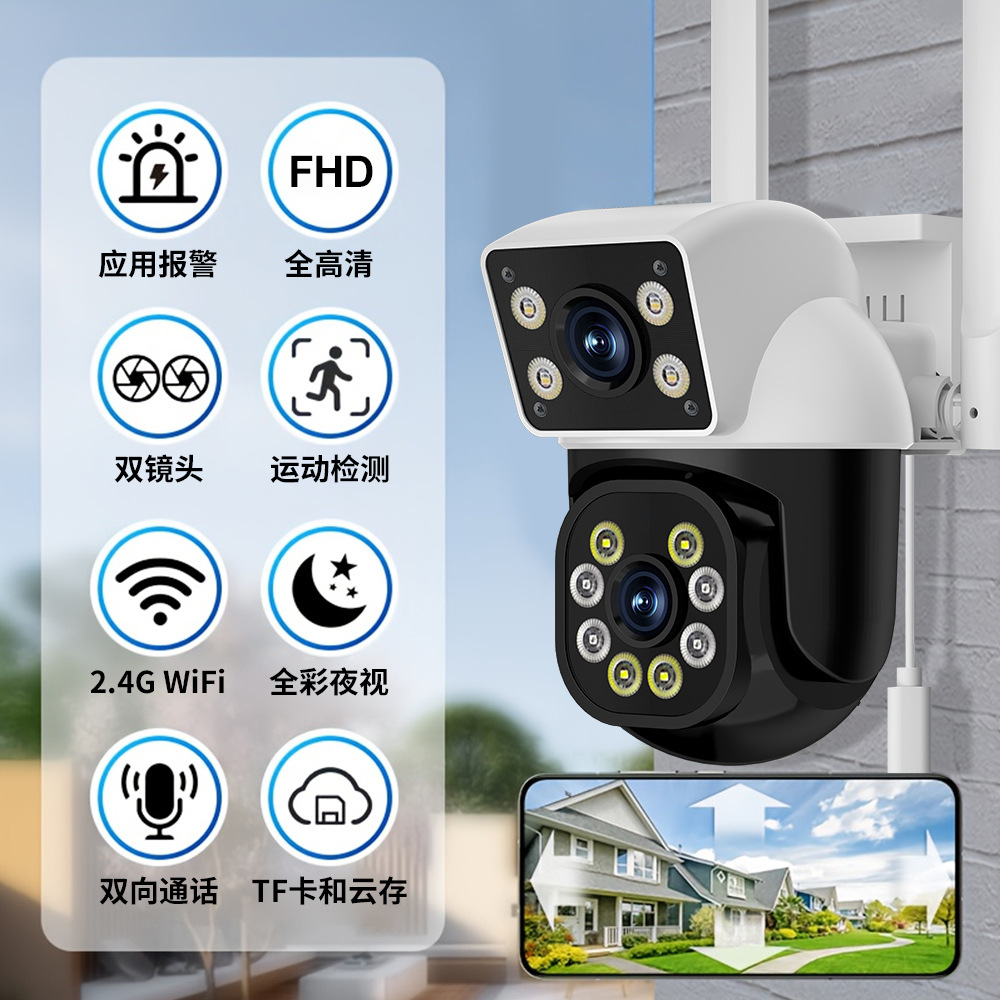 双画面无死角双摄像头室外监控手机远程室内日夜全彩跨境专供
