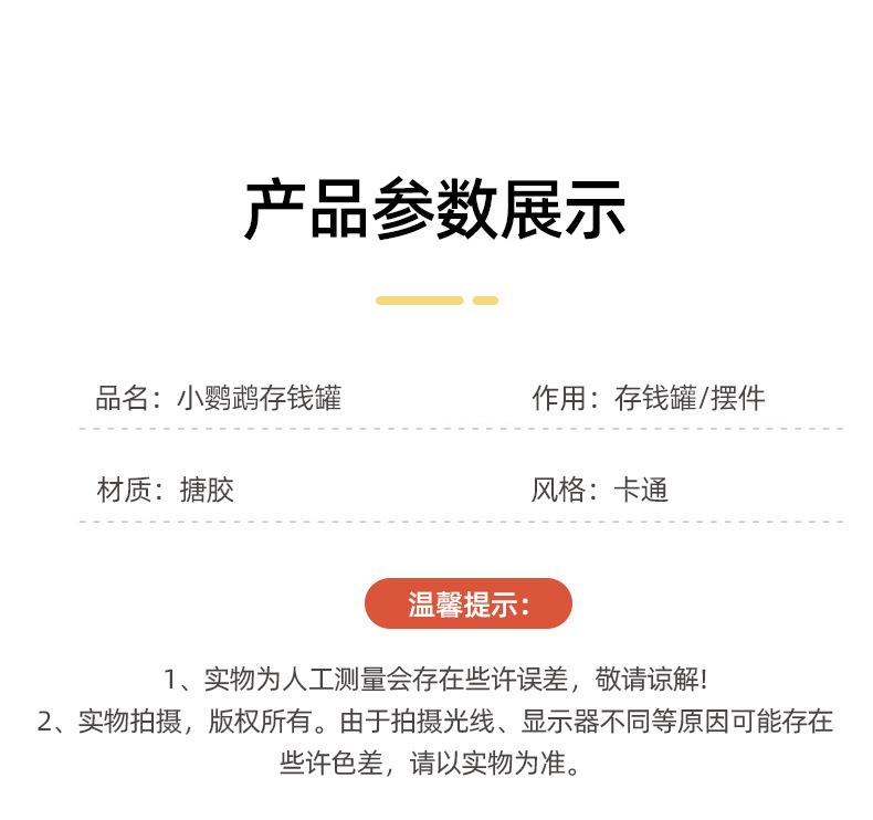 創意的な漫画の小さいオウムの子供の貯金箱はメモリを取ることができます。