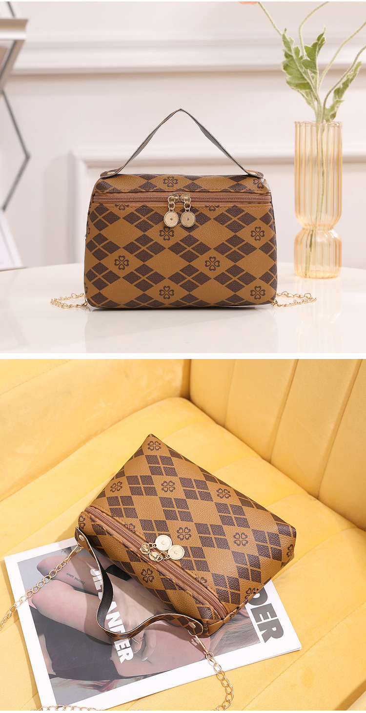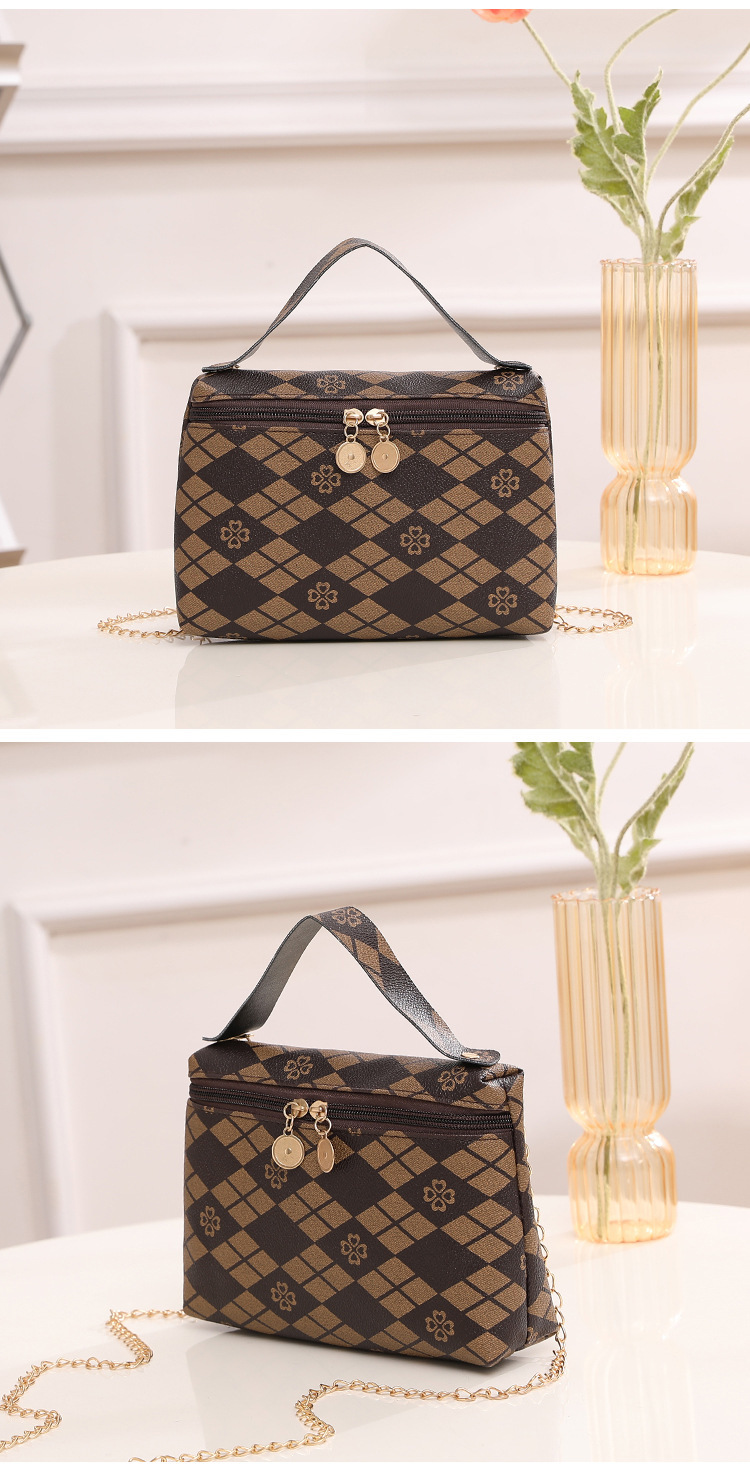 レトロなプリントの肩の斜め掛けの女性のカバンは2023対外貿易の小さい大衆の質感の双ファスナーの正方形の包みの現物の工場を包んで卸売りします。