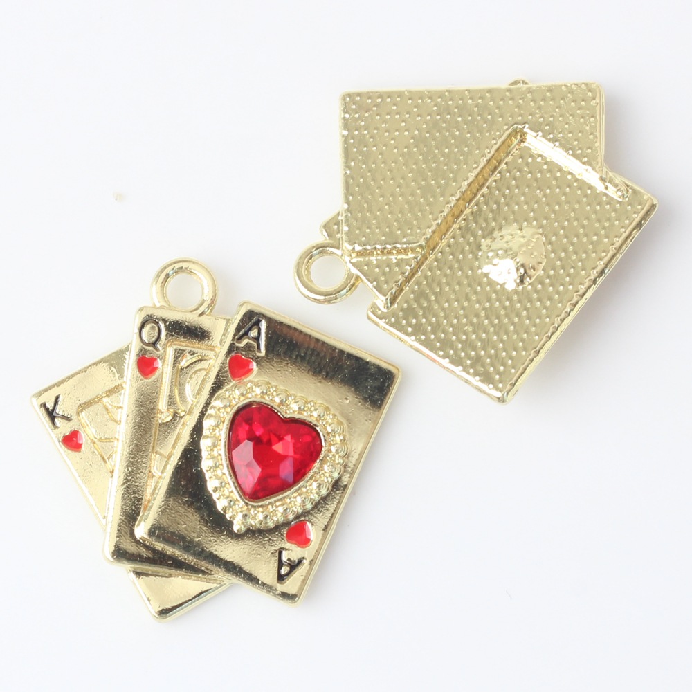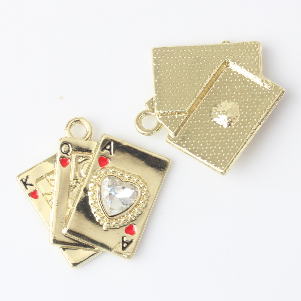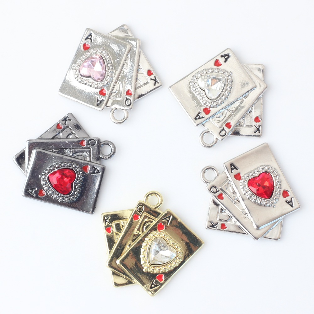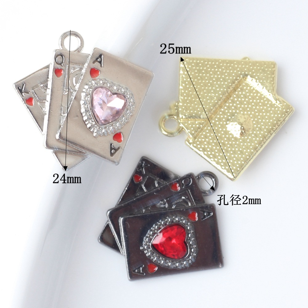 简约合金带钻扑克牌吊坠挂件diy手链项链饰品配件