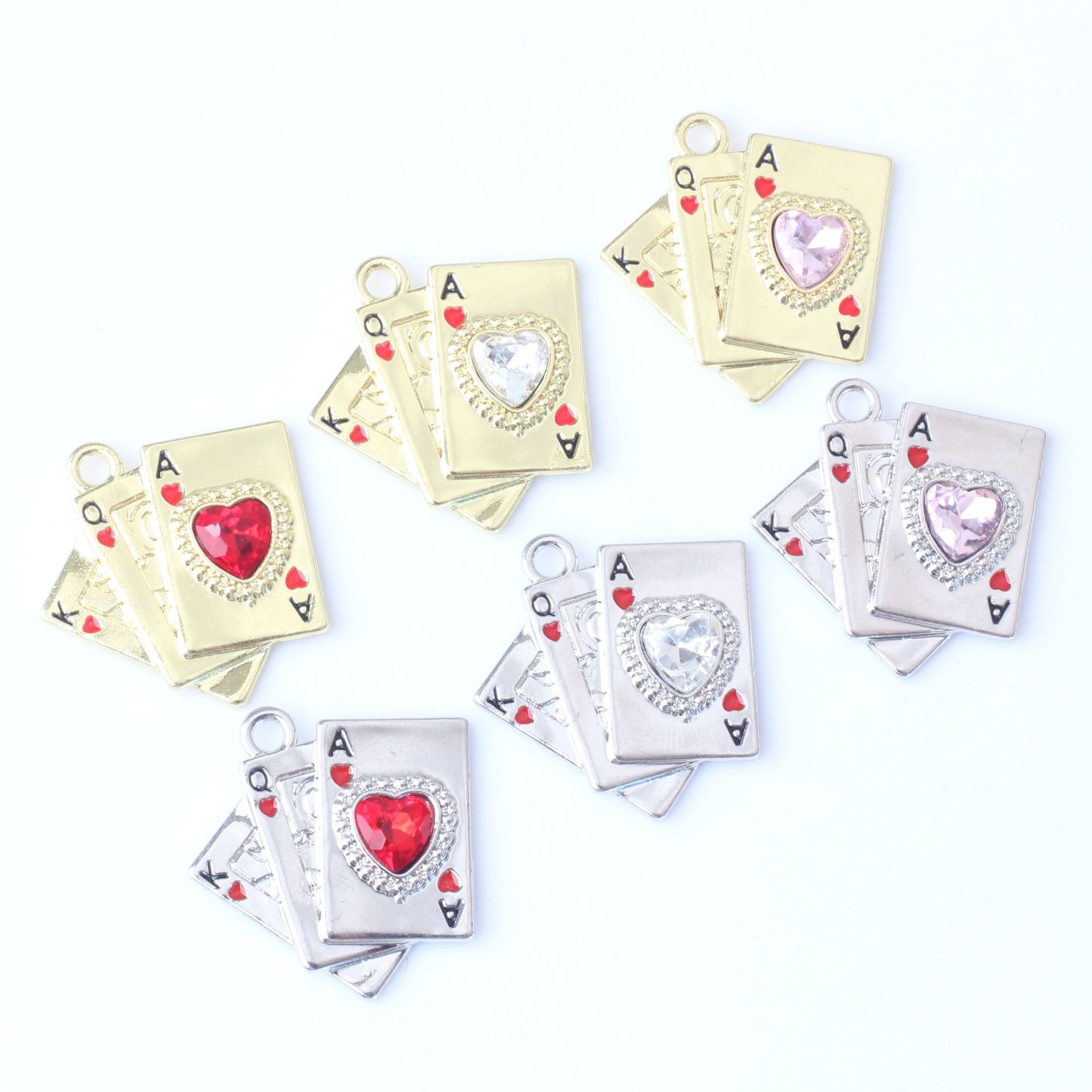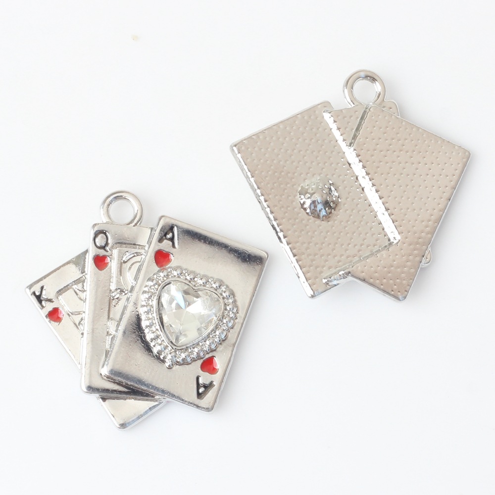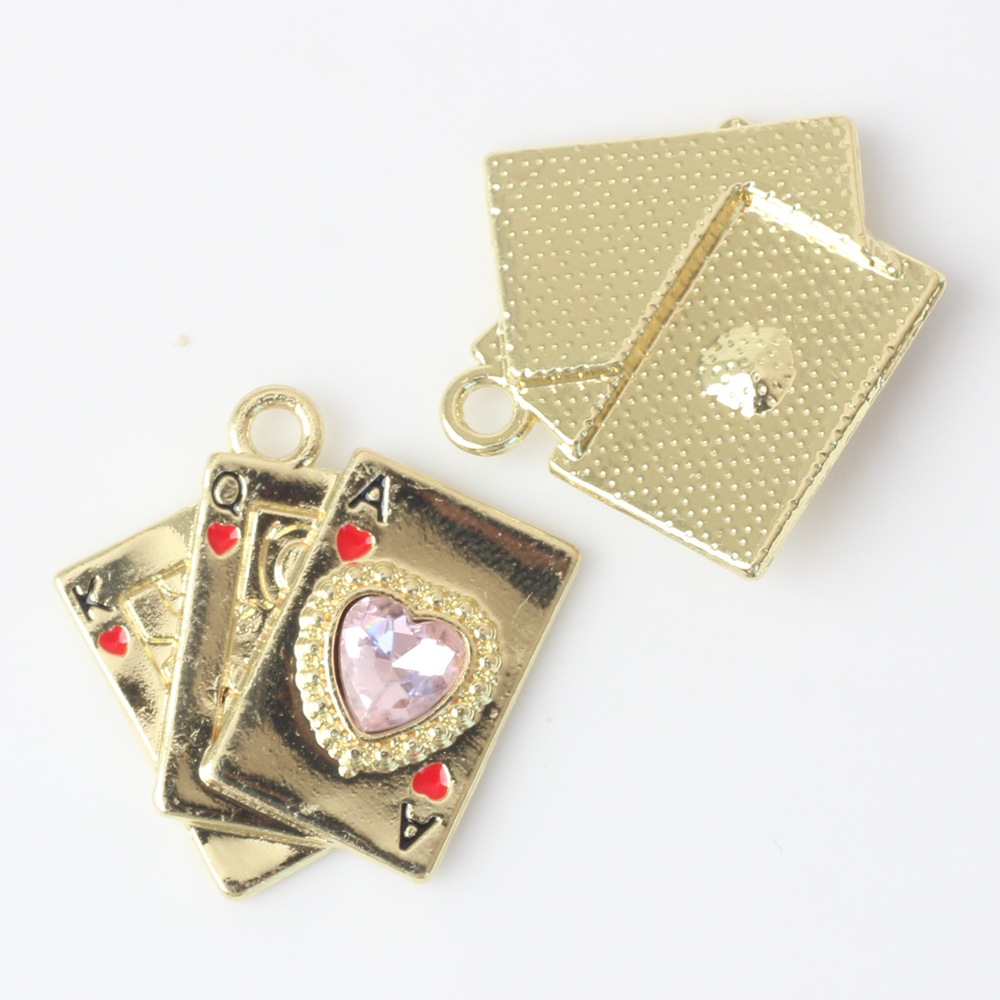 简约合金带钻扑克牌吊坠挂件diy手链项链饰品配件