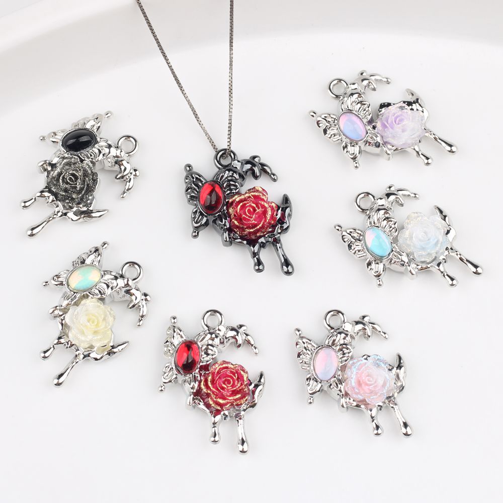 简约合金树脂玫瑰花锆石镶嵌月亮型吊坠挂件DIY手链等饰品配件