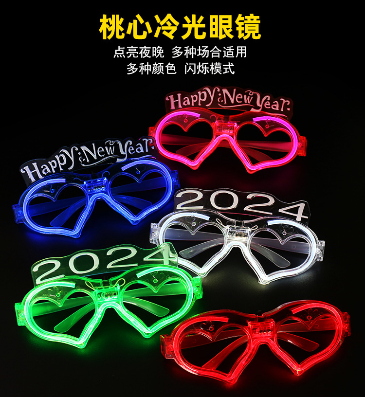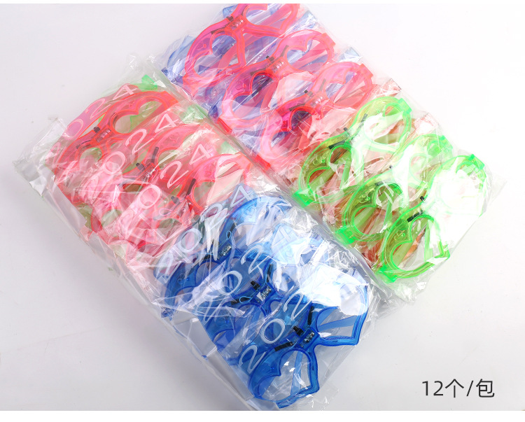2026 新年発光メガネ LED コールドライトスクエアシャッターラブハートメガネ新しい点滅ライトおもちゃ卸売