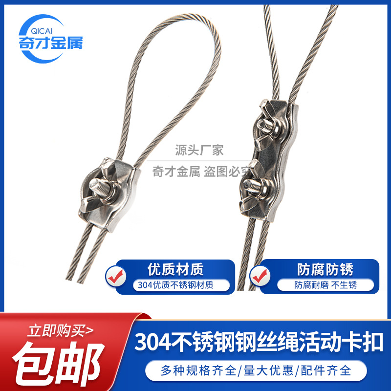 304ステンレスシングルクリップダブルクリップ式チャック飾りクリップワイヤーロープチャックm 2m 3m 4m 5m 6m 8m 10