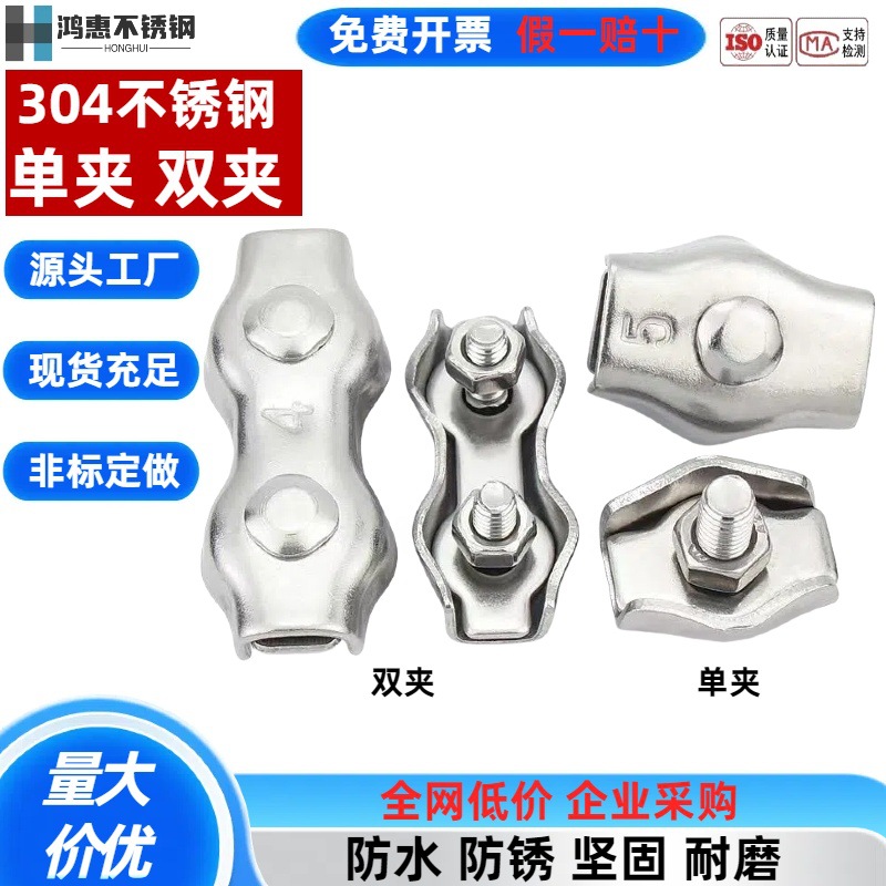 304不锈钢钢丝绳单夹双夹卡扣锁扣板式单卡双卡绳固定接头紧固夹
