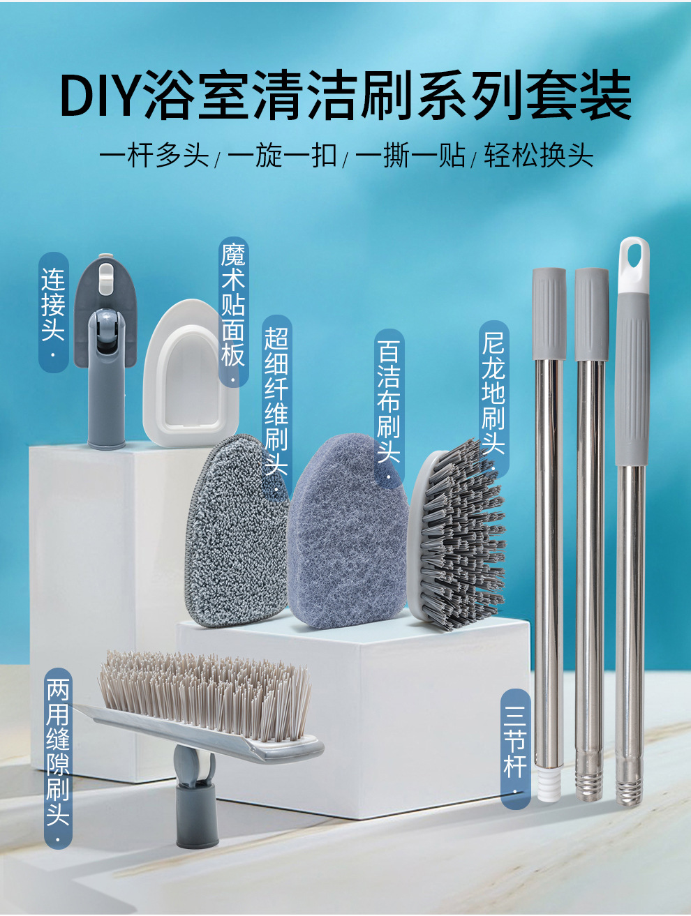 浴室多機能壁面洗浄ブラシ家庭用長柄交換可能ヘッドシリンダーブラシタイル窓ガラススポンジブラシ