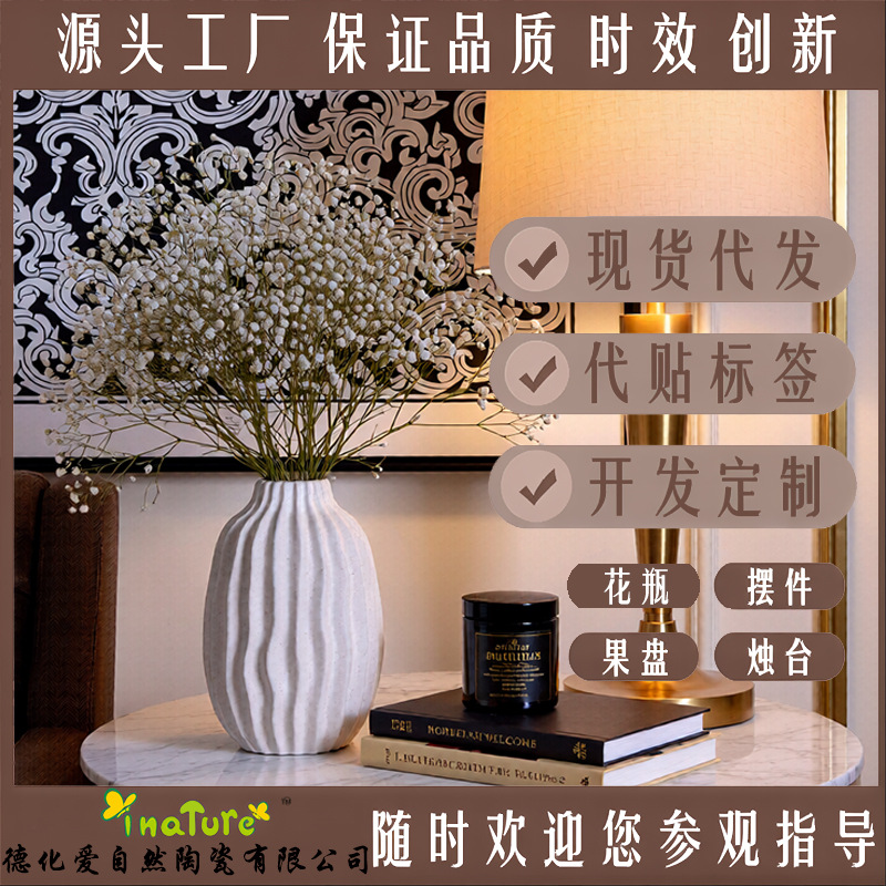 原创有机线条陶瓷鲜花干花花瓶石纹手感釉现代简约摆件批发跨境爆