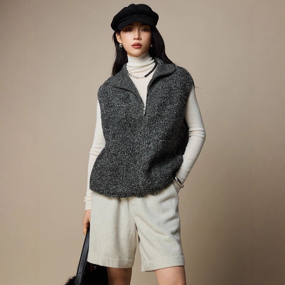圈圈纱纯羊毛针织马甲背心女拉链毛衣秋冬外套25新款女装叠穿上衣