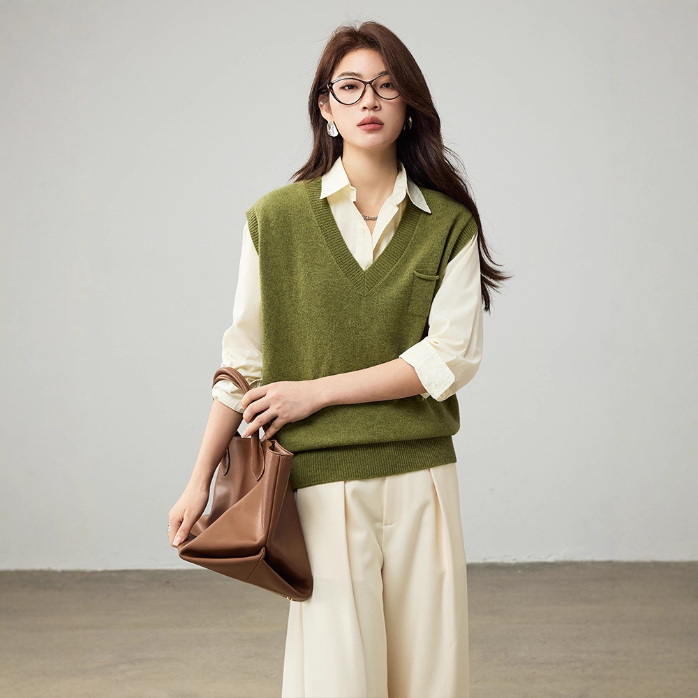 美利奴100羊毛马甲女外穿v领针织衫25新款女装秋百搭坎肩叠穿背心