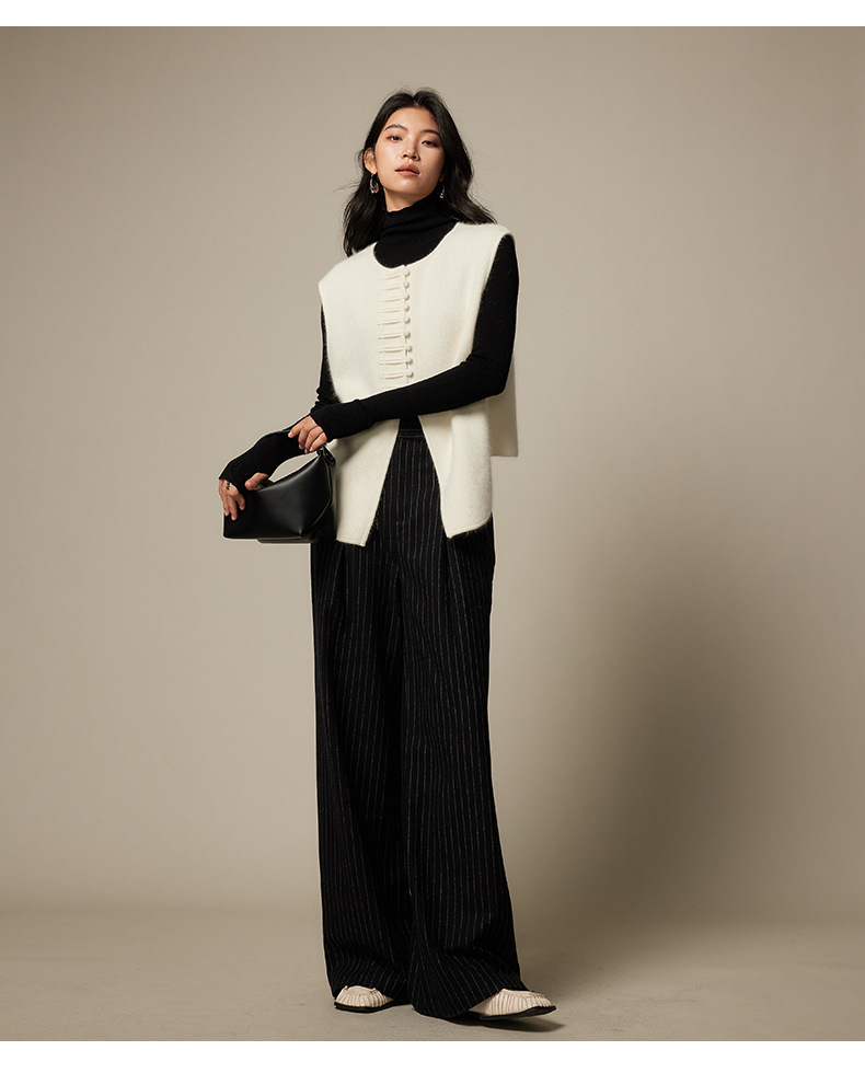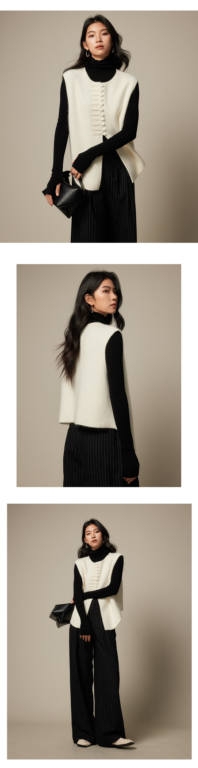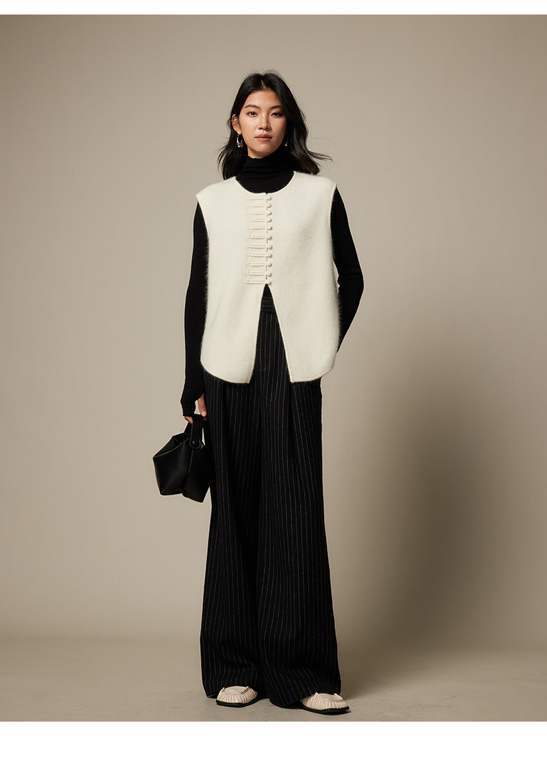 多用途レイヤードアライグマベルベットニットベストレディースジャケット25秋冬Vネックシングルブレストノースリーブウールカーディガン
