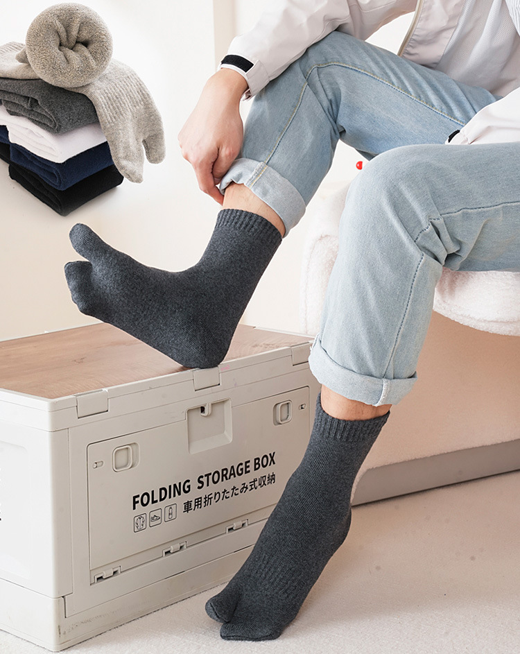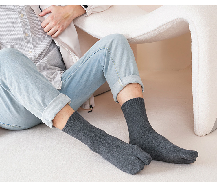 2本指の靴下の指の靴下の中の筒の秋冬の厚い防臭の男性の靴下の2本の指の靴下のビジネスの人の字は引きずっています。