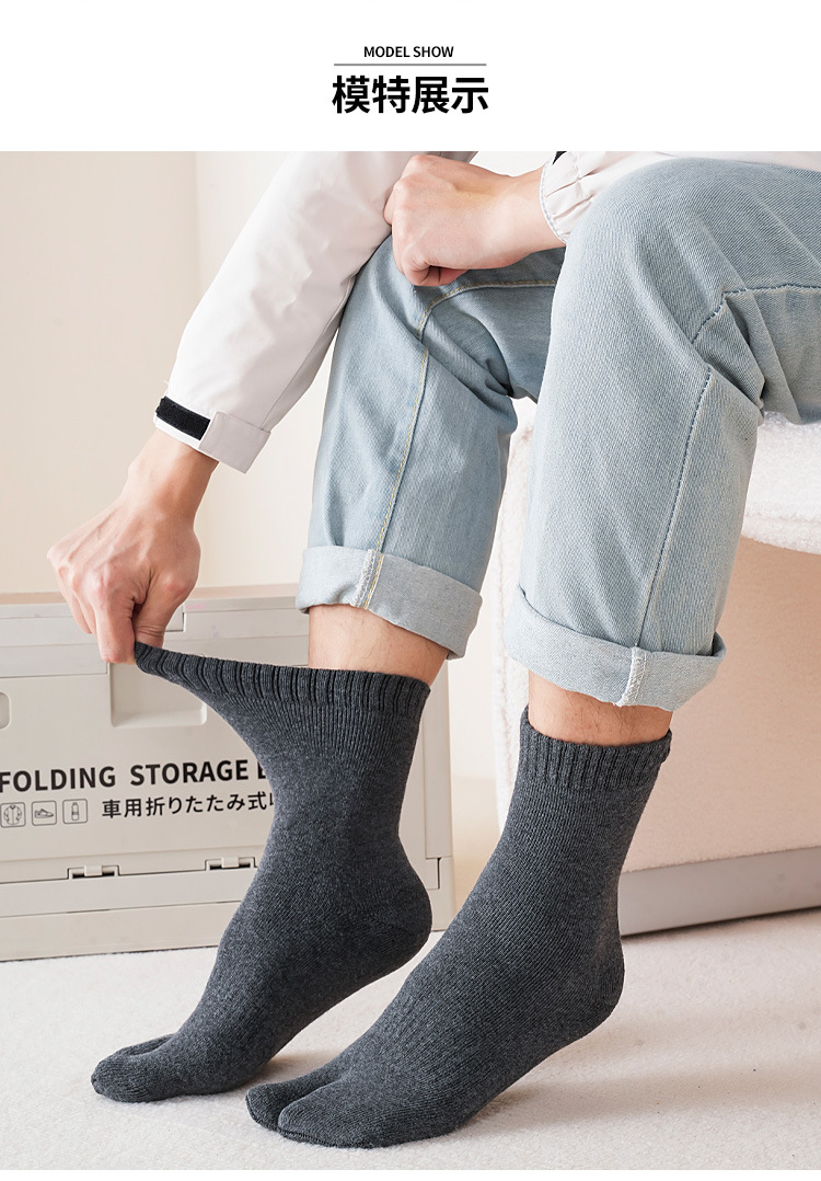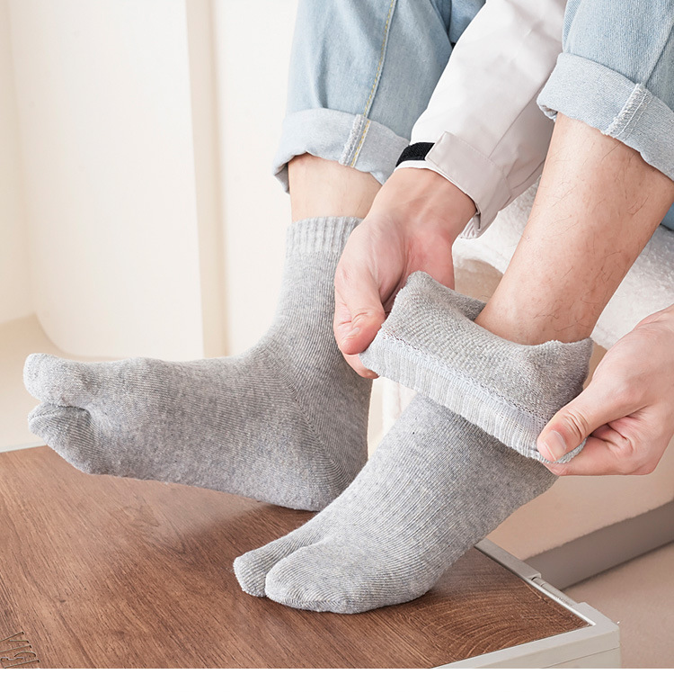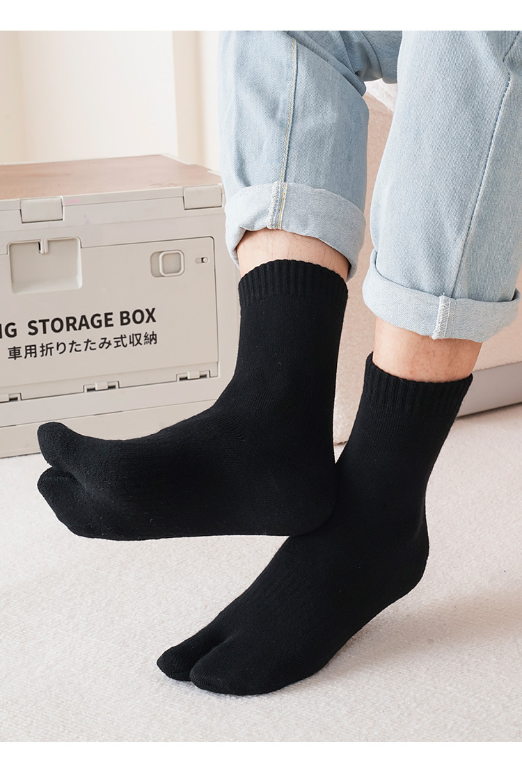 分趾袜子男二指分指袜纯棉春秋冬季无骨缝合袜纯色日系简约黑灰色