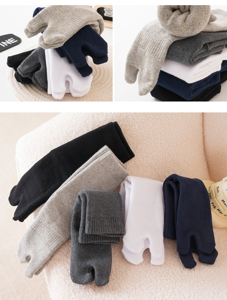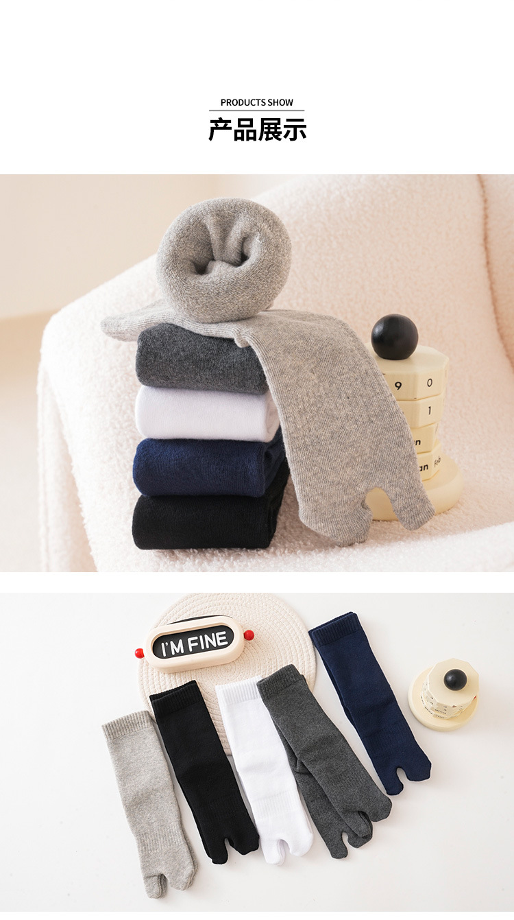 レディース2本指ソックス2本指ソックス日本木ソックス秋冬コットン分指ソックス純色男女2本指ソックス中ソックス