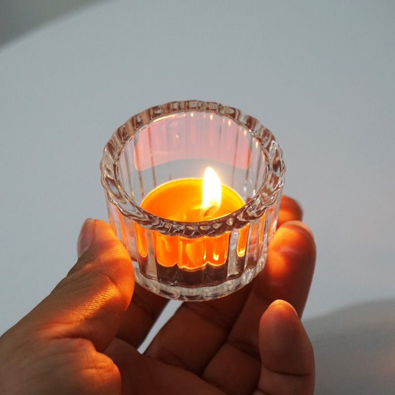 ガラスの小さいボールの杯のアロマガラスのろうそくの杯のガラスの燭台のワックスのグラスの卵の杯のろうそくの器