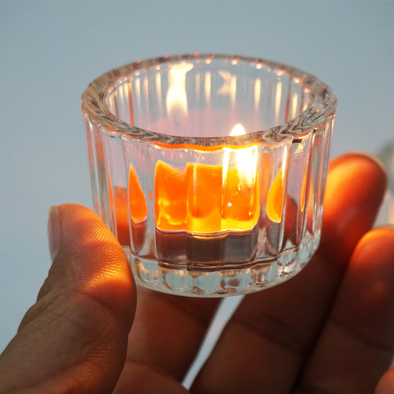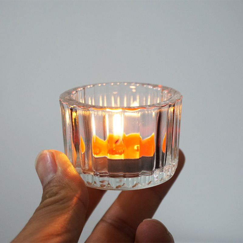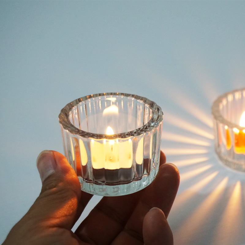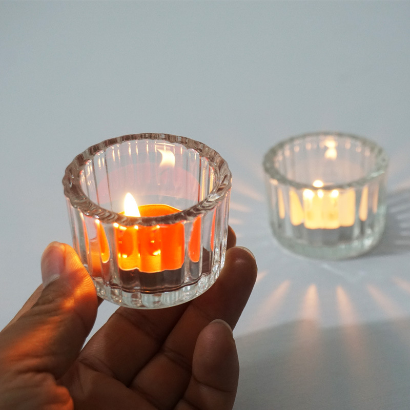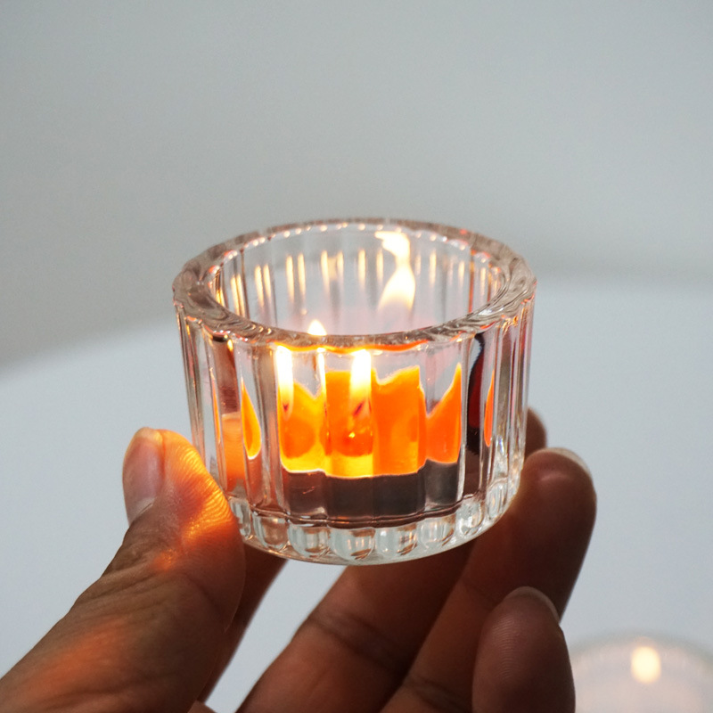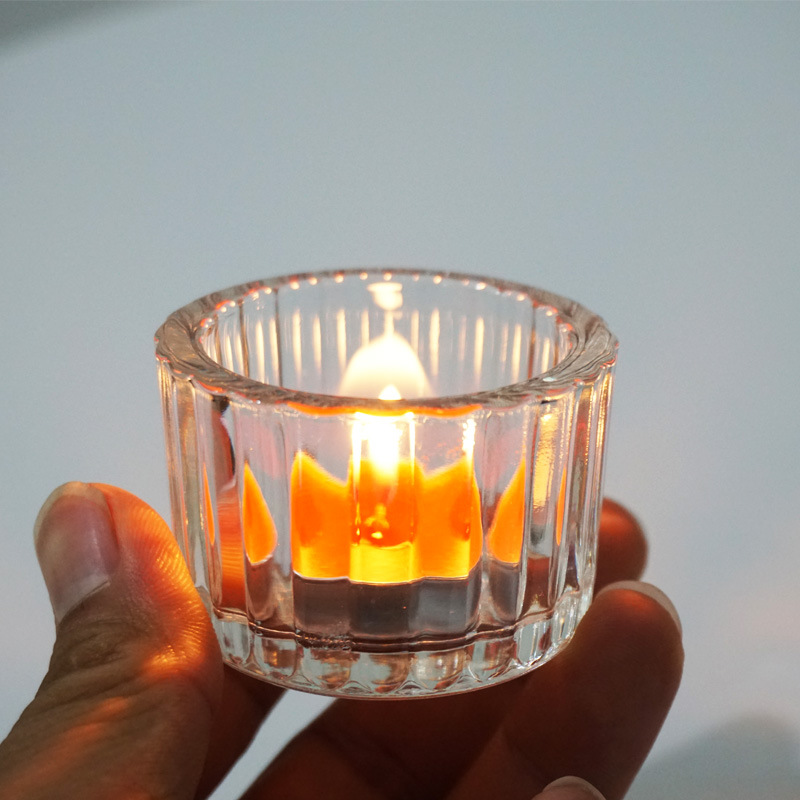 卸売り透明水晶縦紋両用ガラスろうそく台レストラン結婚祝い装飾テーブルの置物燭台