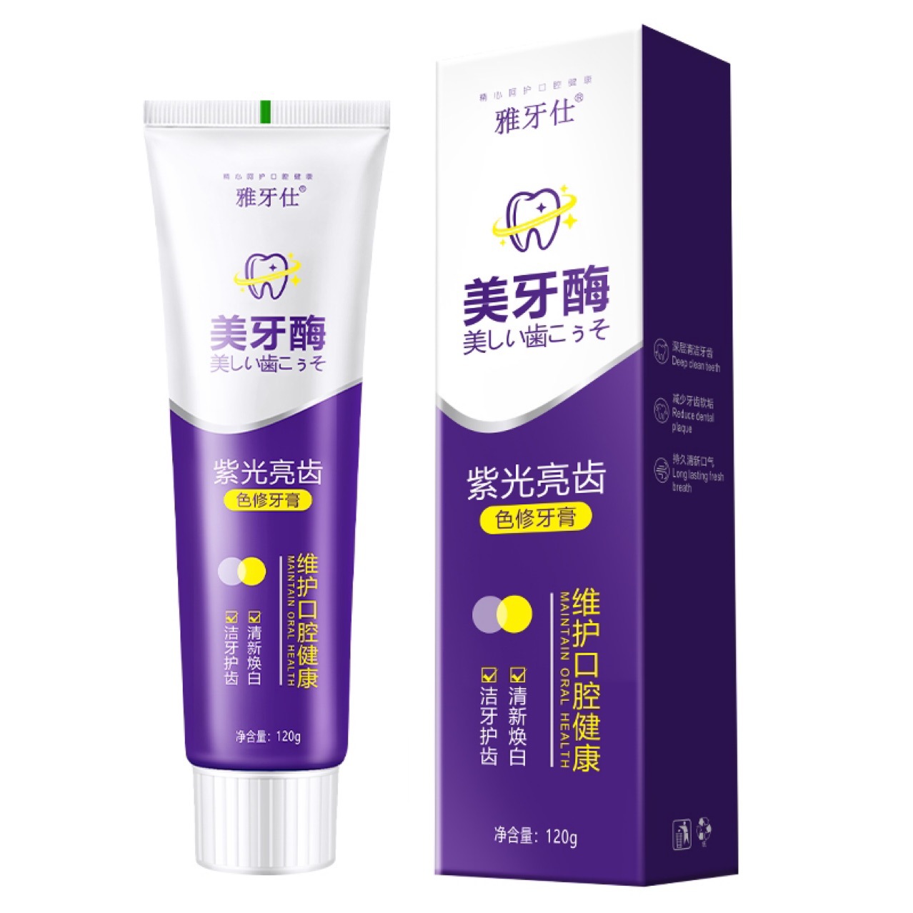 正品美牙酶牙膏清洁口腔清新口气清爽口感紫光护齿亮白护龈120g