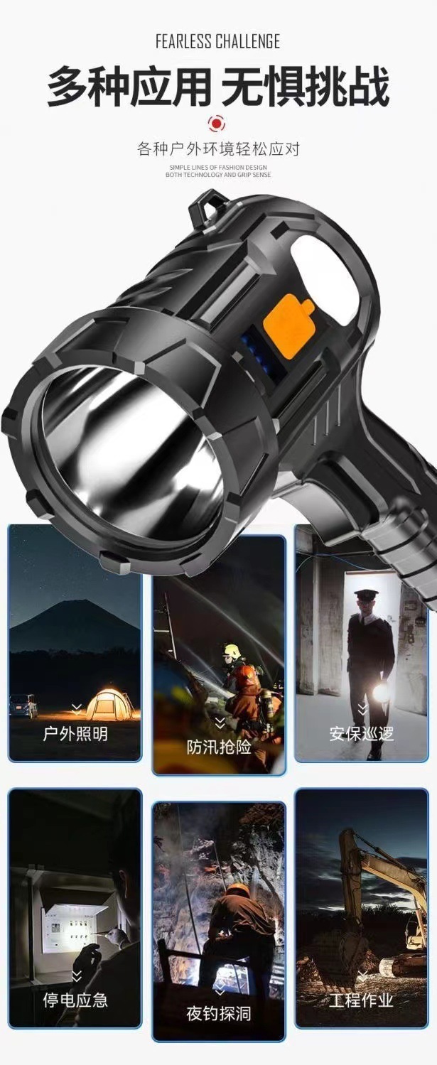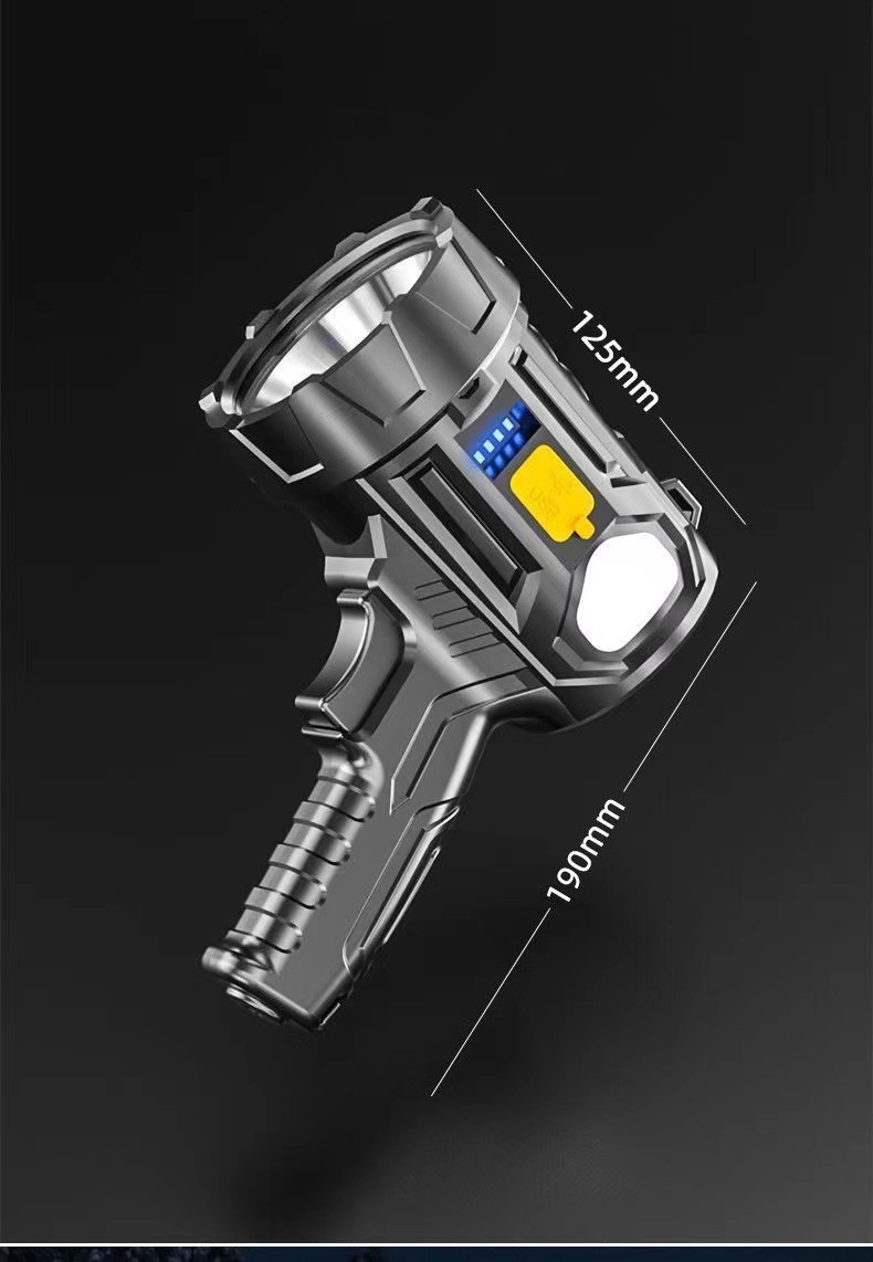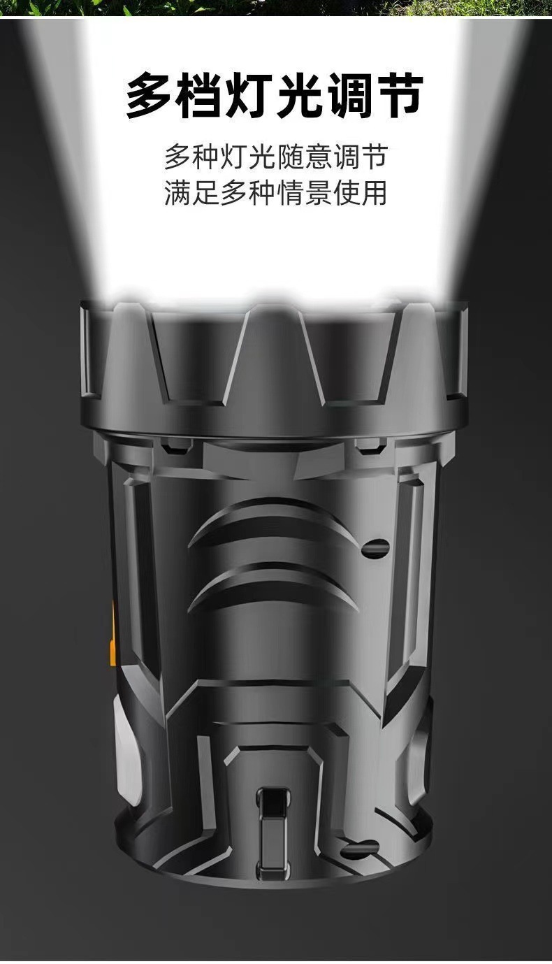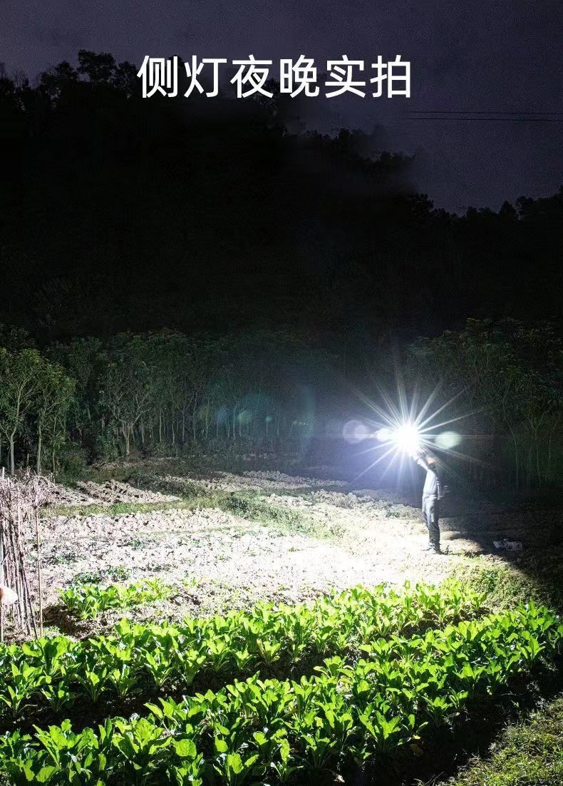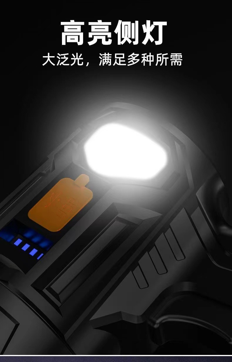 户外LED强光手电筒充电便携长续航远射探照灯带侧灯USB充电手提灯