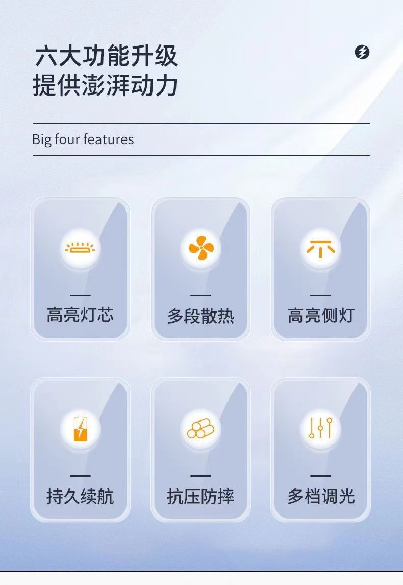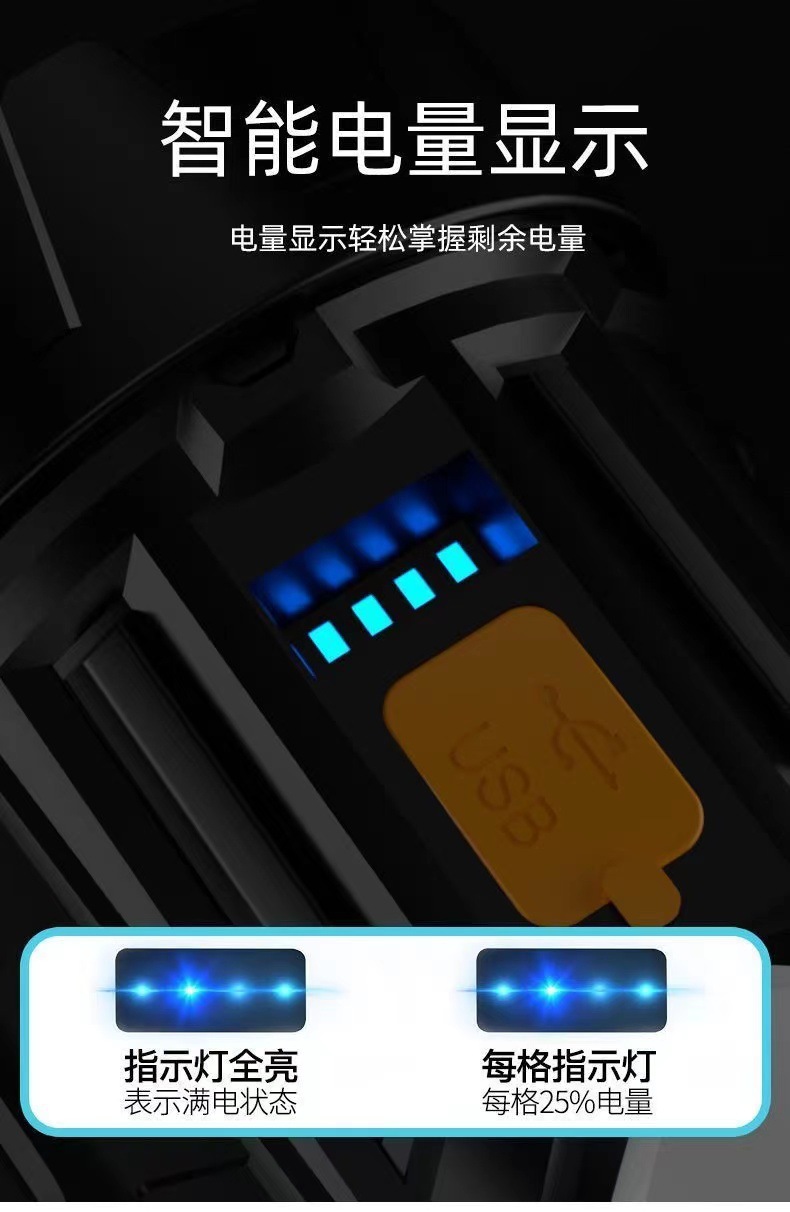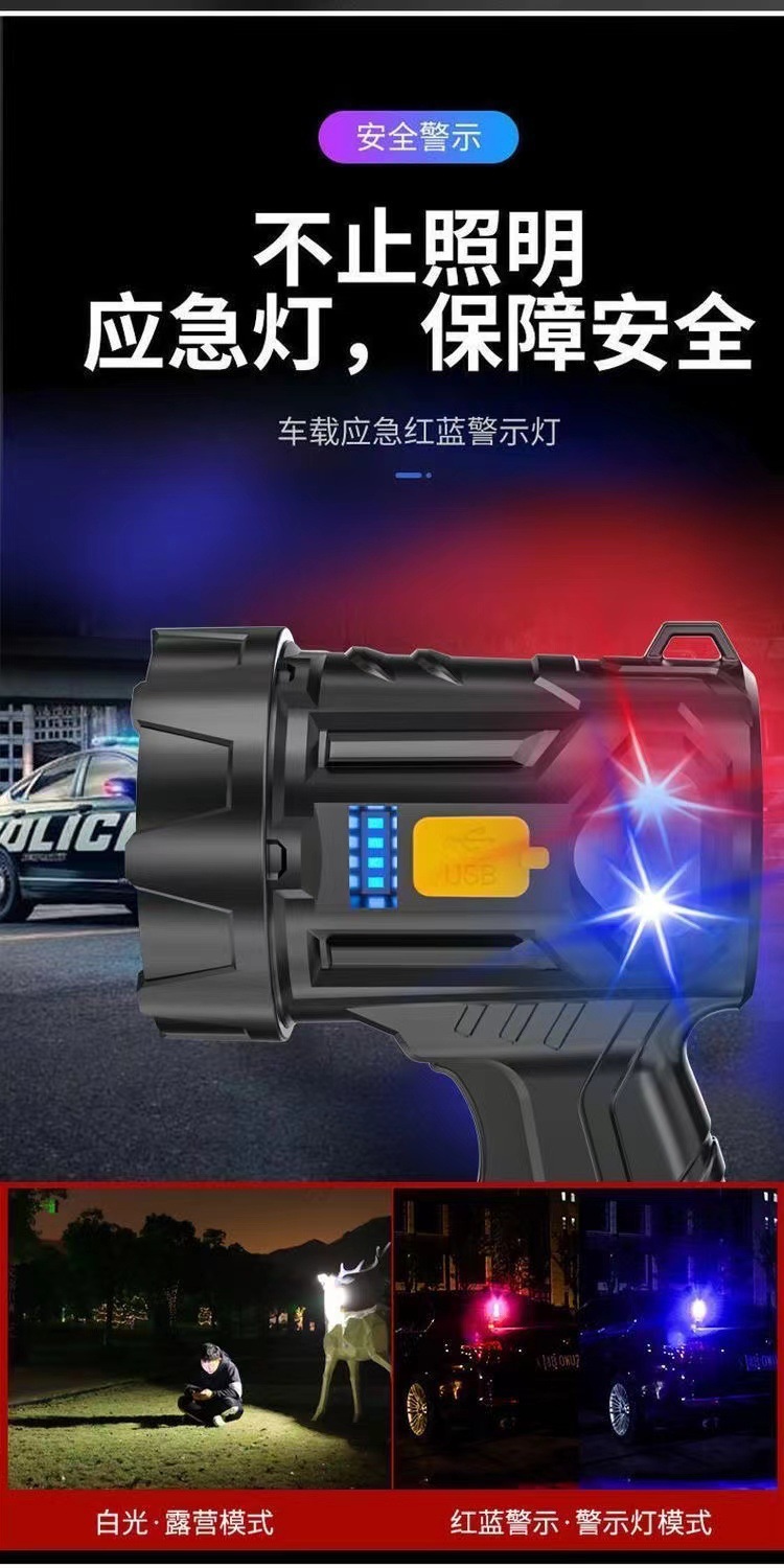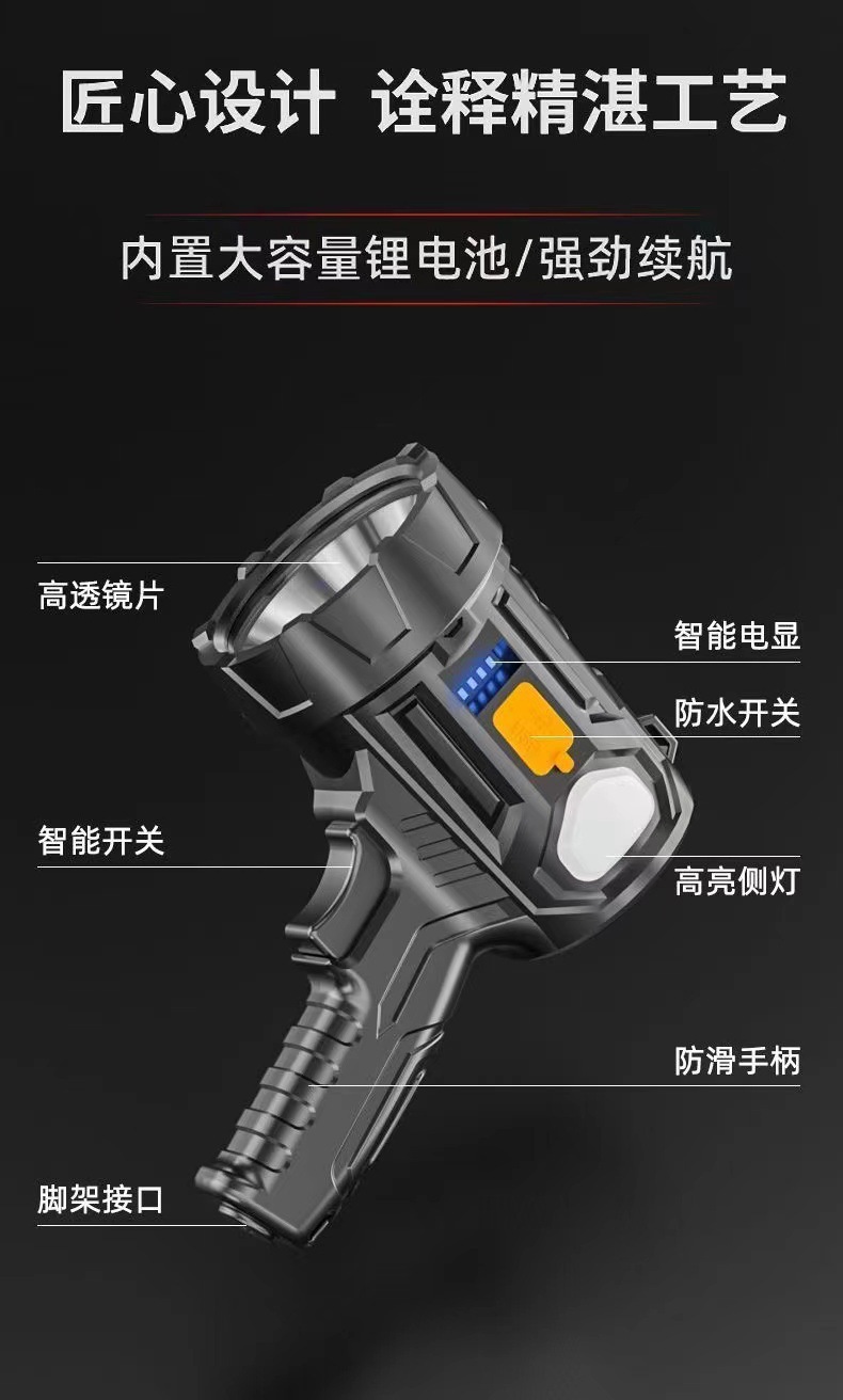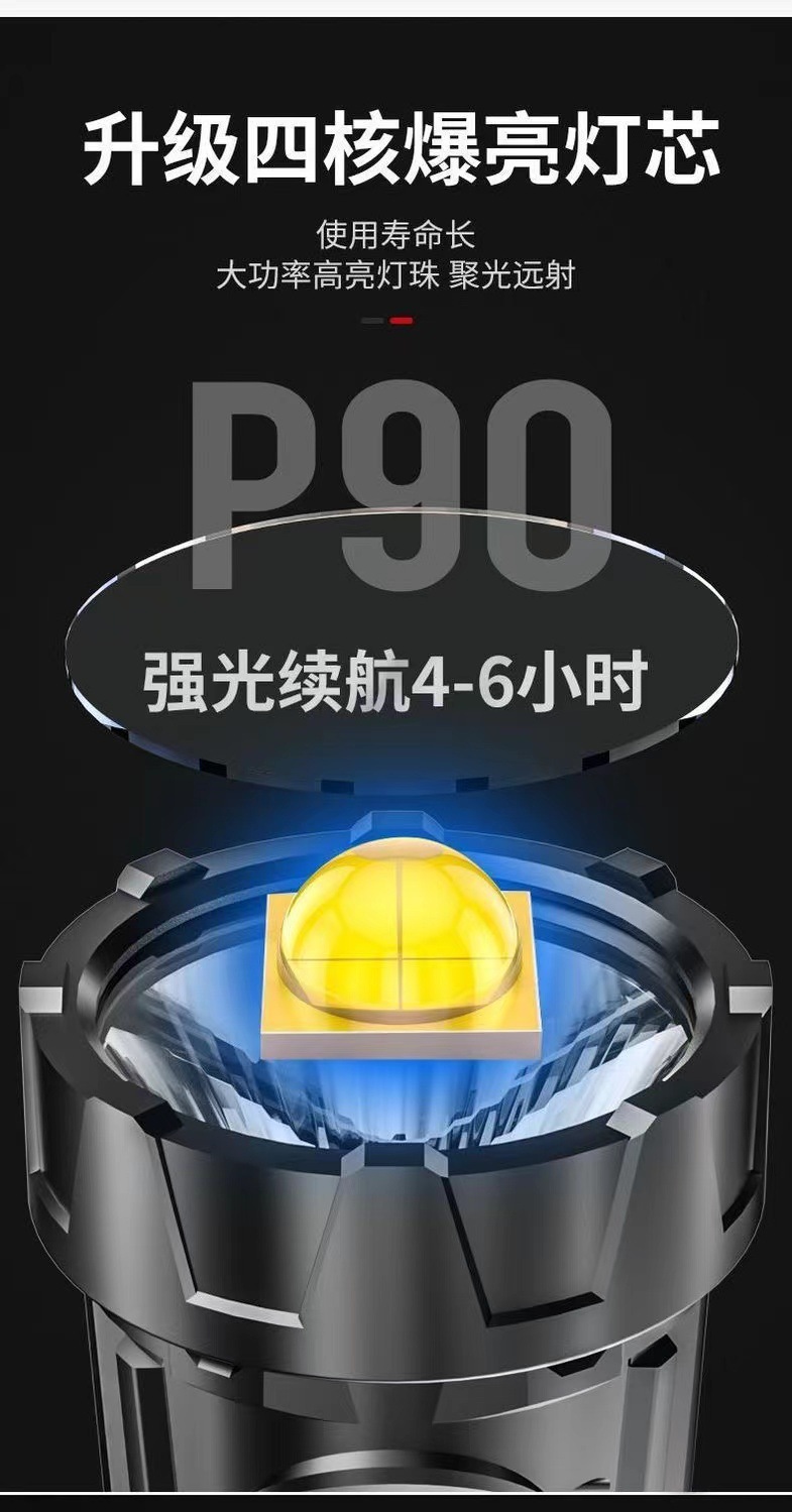 户外LED强光手电筒充电便携长续航远射探照灯带侧灯USB充电手提灯
