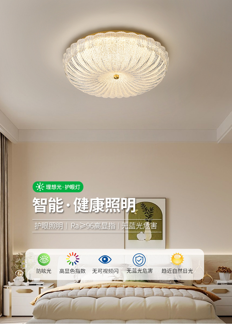 卧室灯吸顶灯轻奢设计师主卧圆形灯具网红水晶南瓜灯led房间顶灯