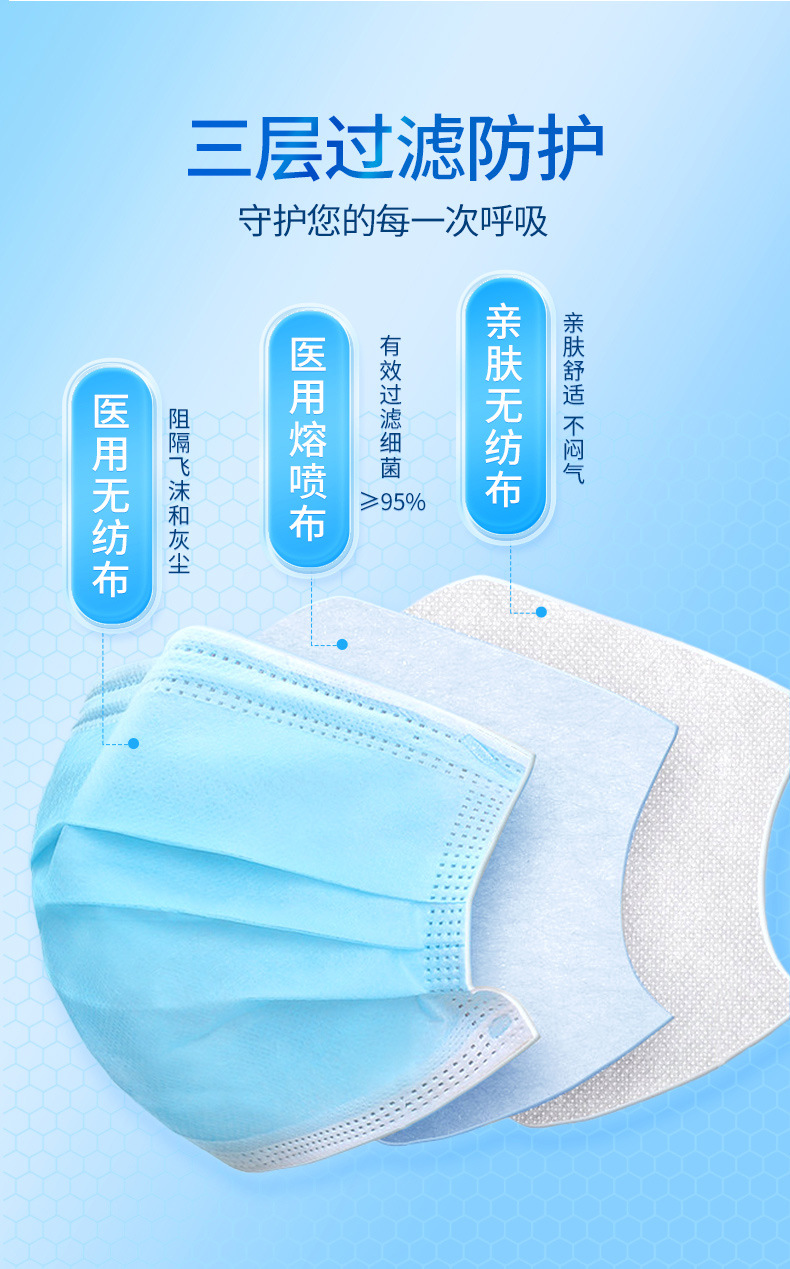 恒迪使い捨て医療用外科マスク独立包装三層防護医療用級袋工場卸売りスポット