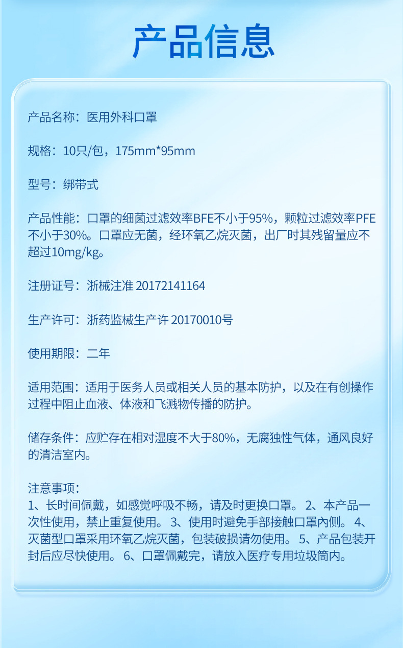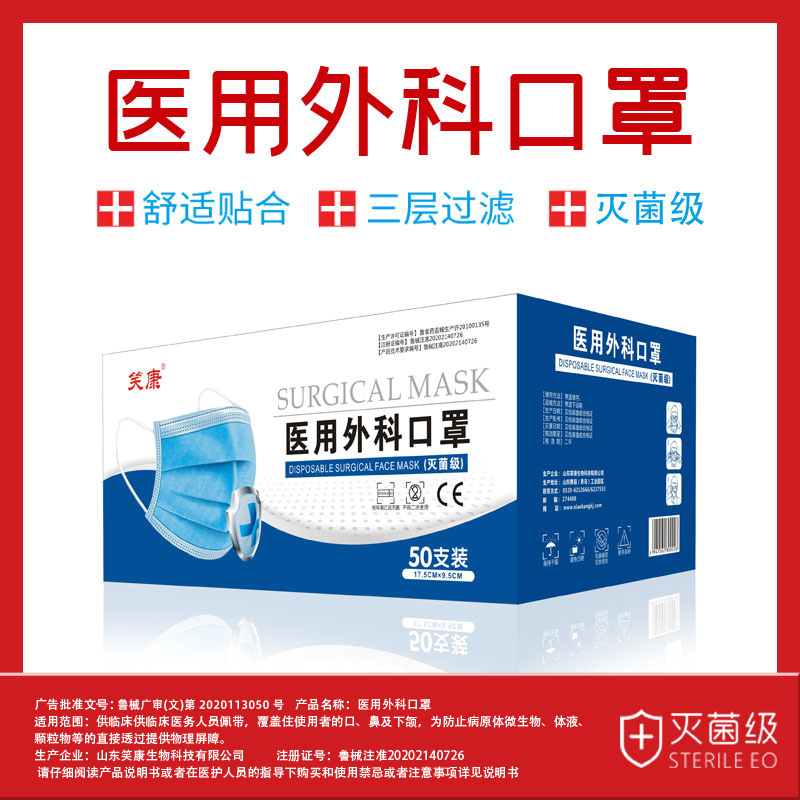 笑康メーカーは現物医療用外科マスクエチレンオキシド滅菌10枚のマスクを供給しています。