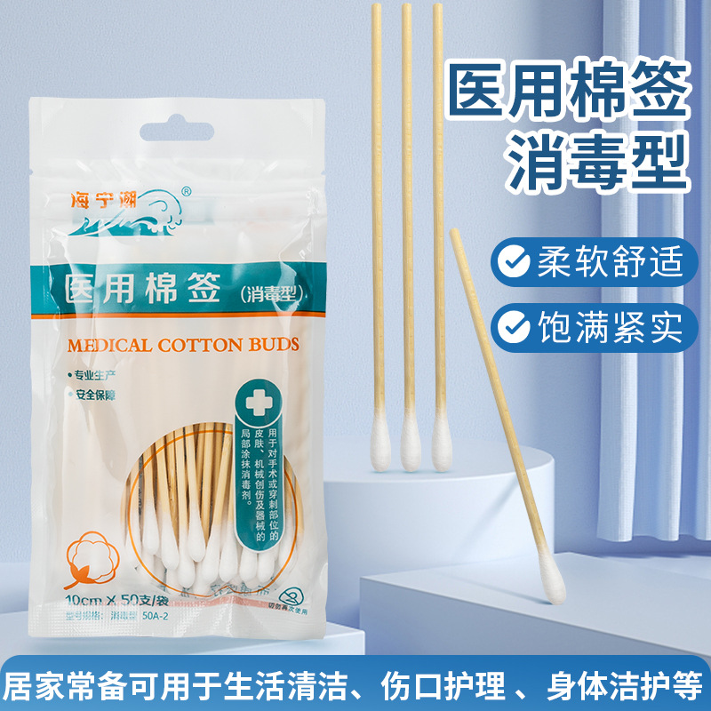 医療用使い捨て10cm消毒綿棒乳児看護傷清潔耳取り化粧綿綿棒50本入り