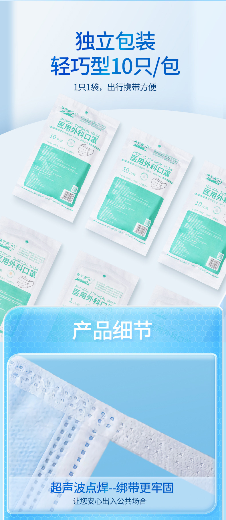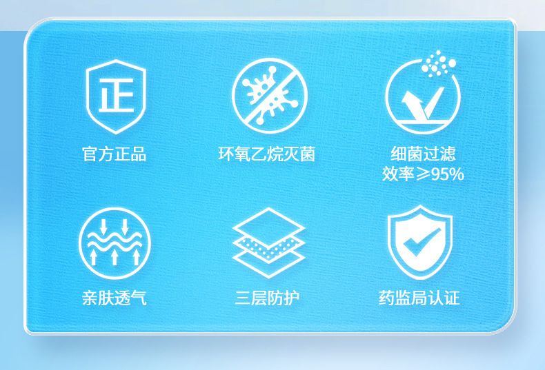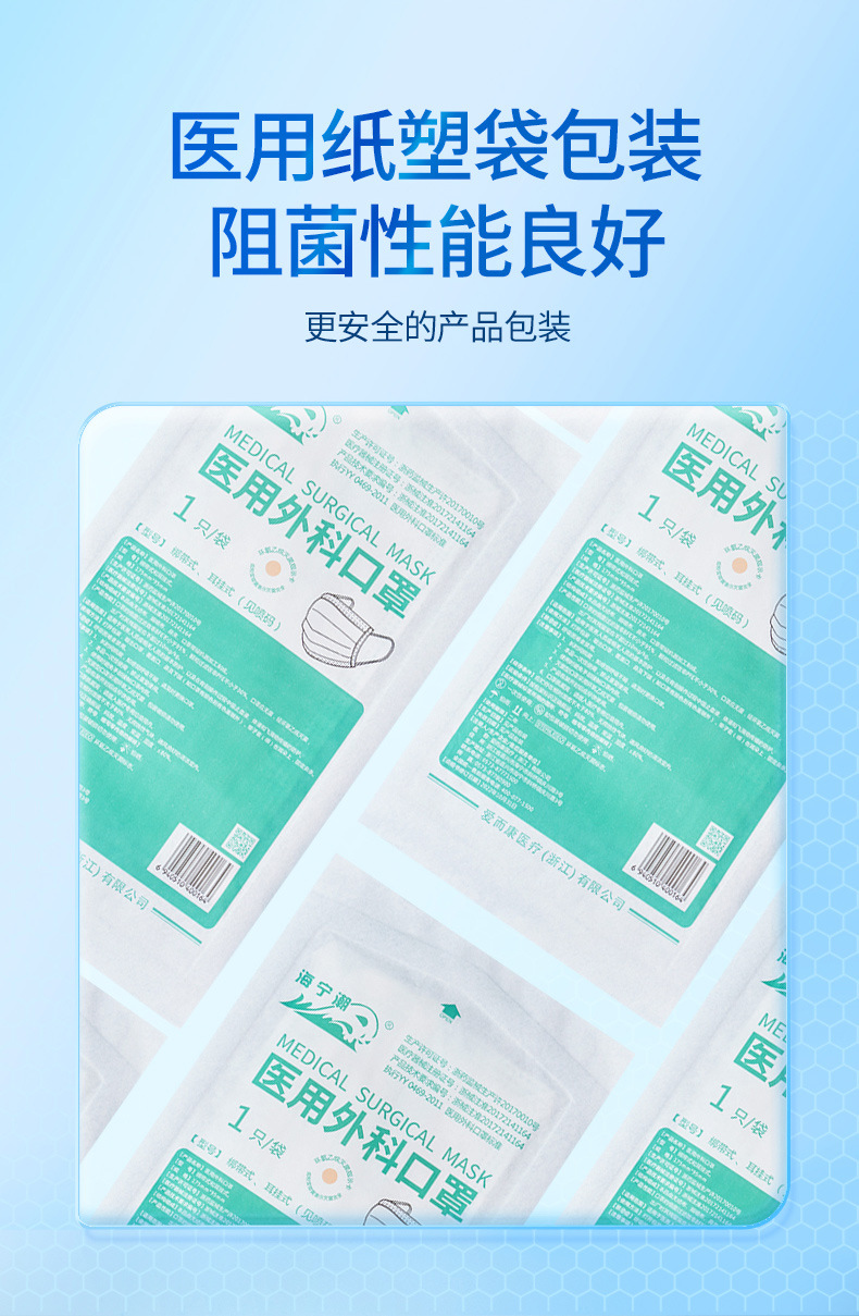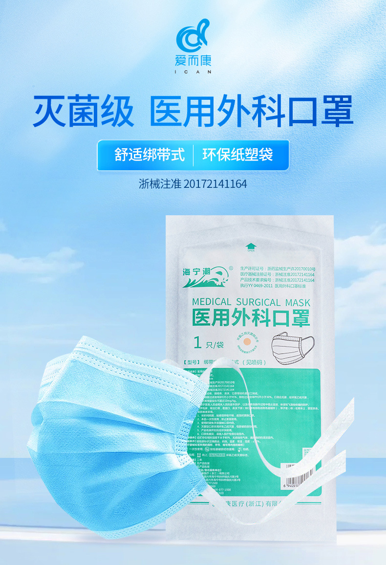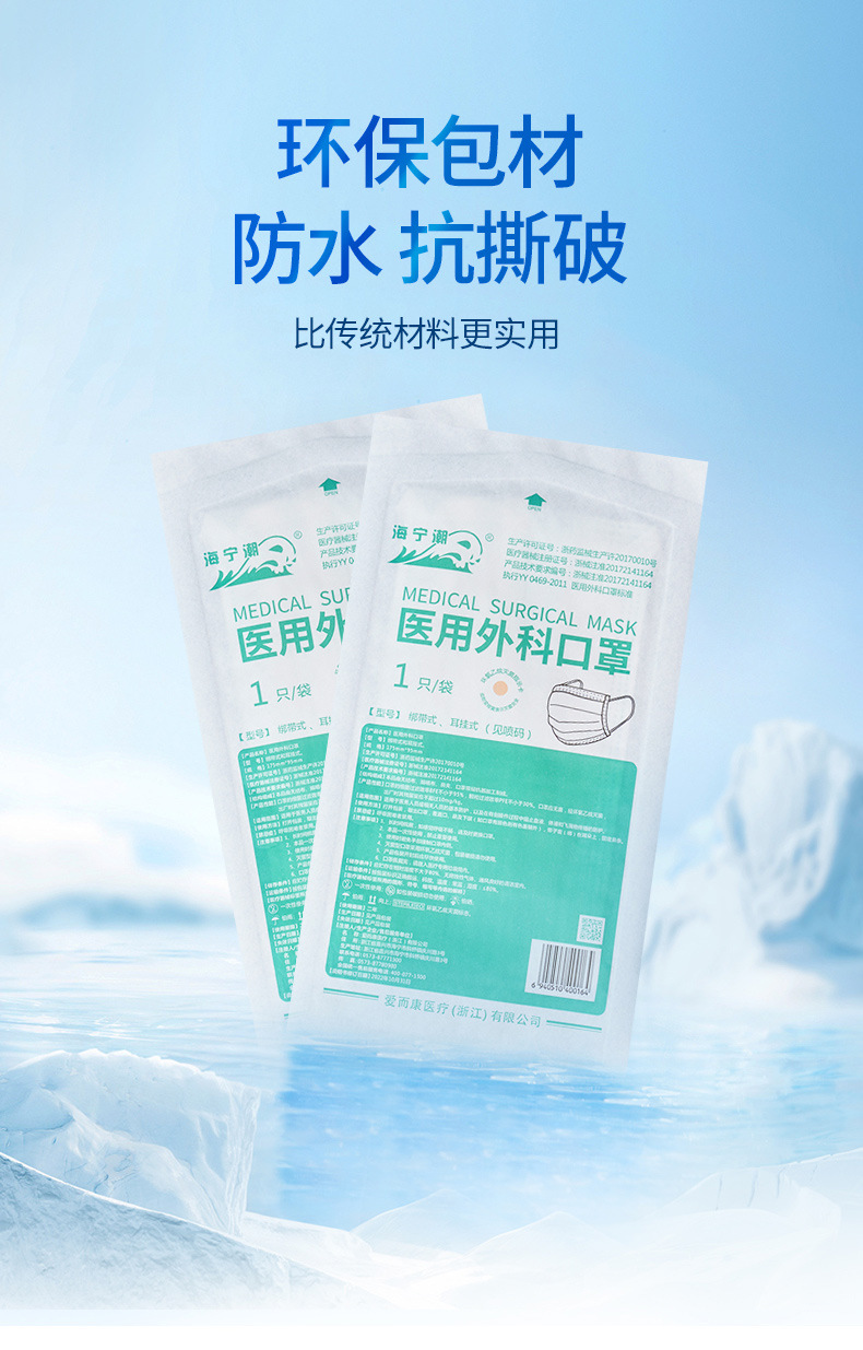 海寧潮医療用外科マスク消毒通気防塵青色医療防護使い捨てマスク独立包装