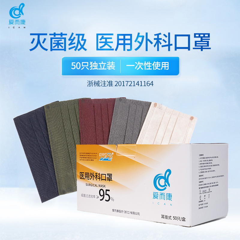 医療用外科用マスク50箱使い捨てマスク3層メルトブローン布快適通気防護多色ファッションモデル