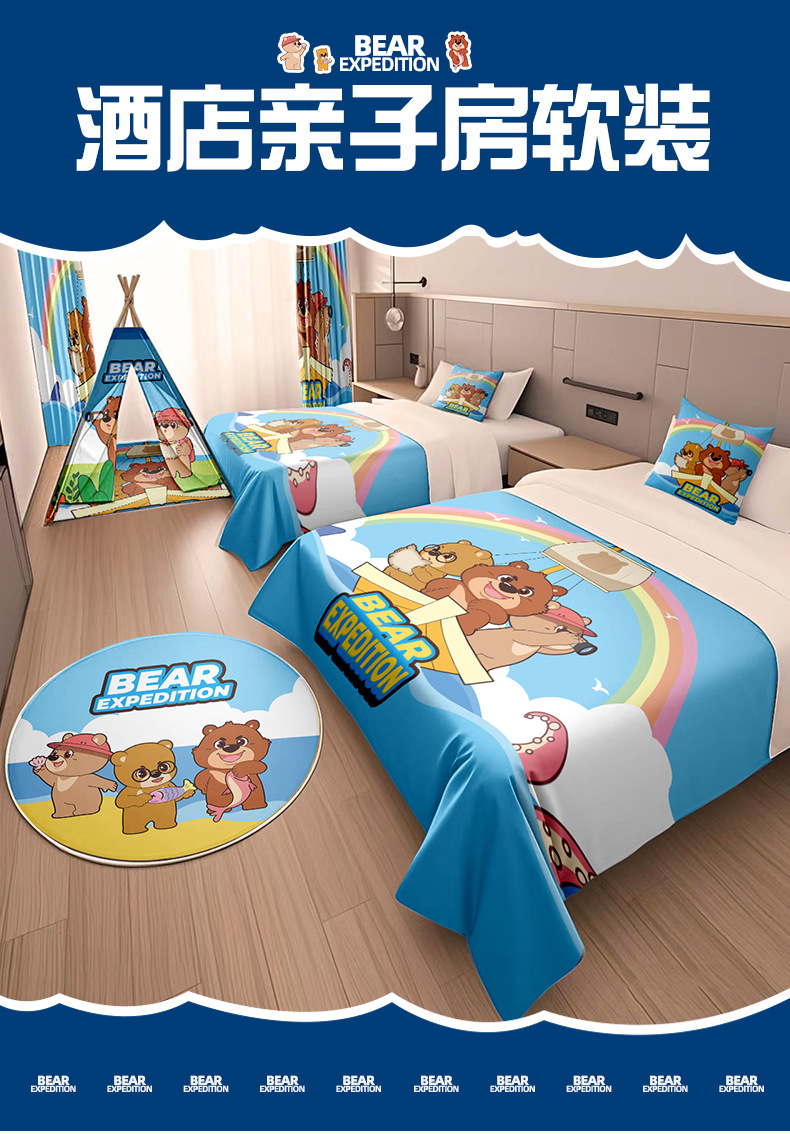 现做酒店亲子房卡通床盖宾馆民宿家用儿童房床尾巾抱枕帐篷装批发