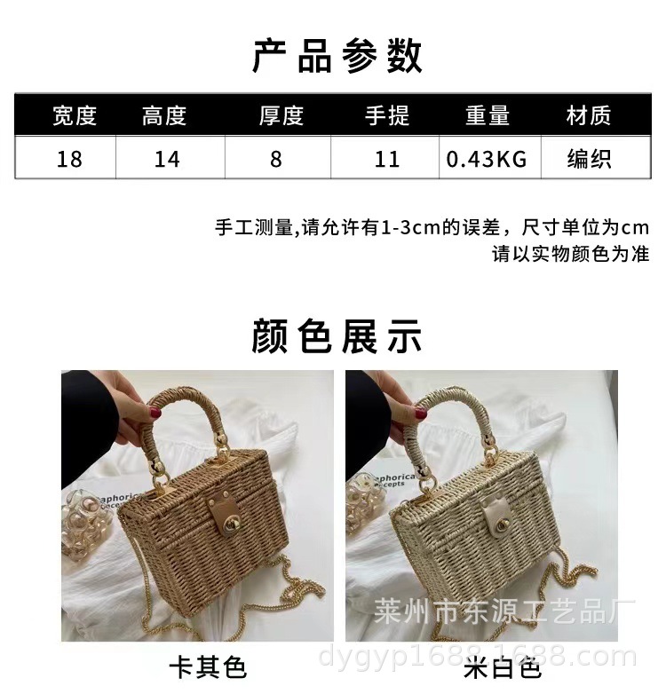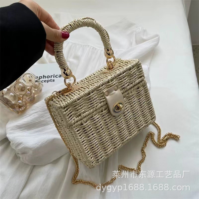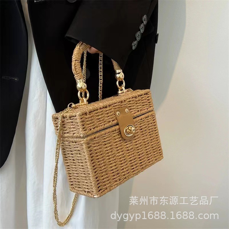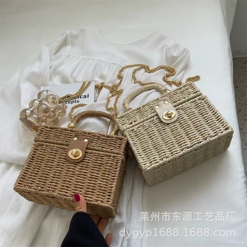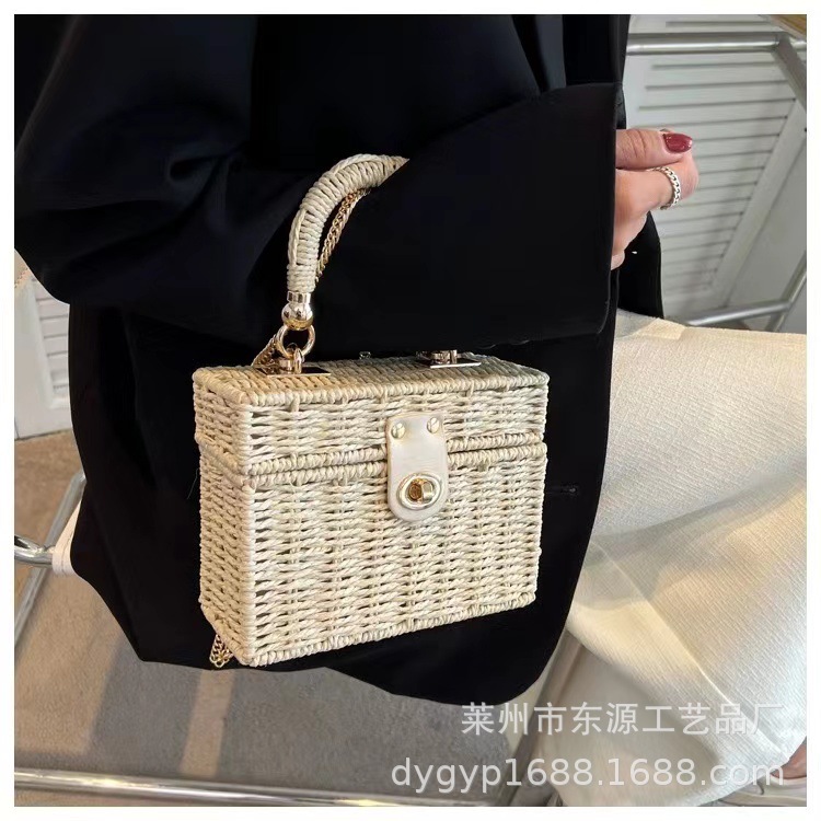 新しいスタイルの小香風スクエアバッグ、編み込みバッグ、デイリーカジュアル、通勤、多用途、海辺の休暇に最適なレディースバッグ