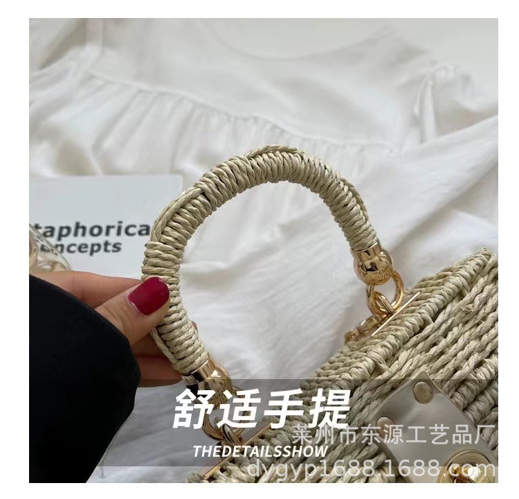 新しいクロスボディハンドバッグ韓国スタイルファッショナブルなペーパーロープわらバッグ鉄フレーム手織りバッグハンドバッグ