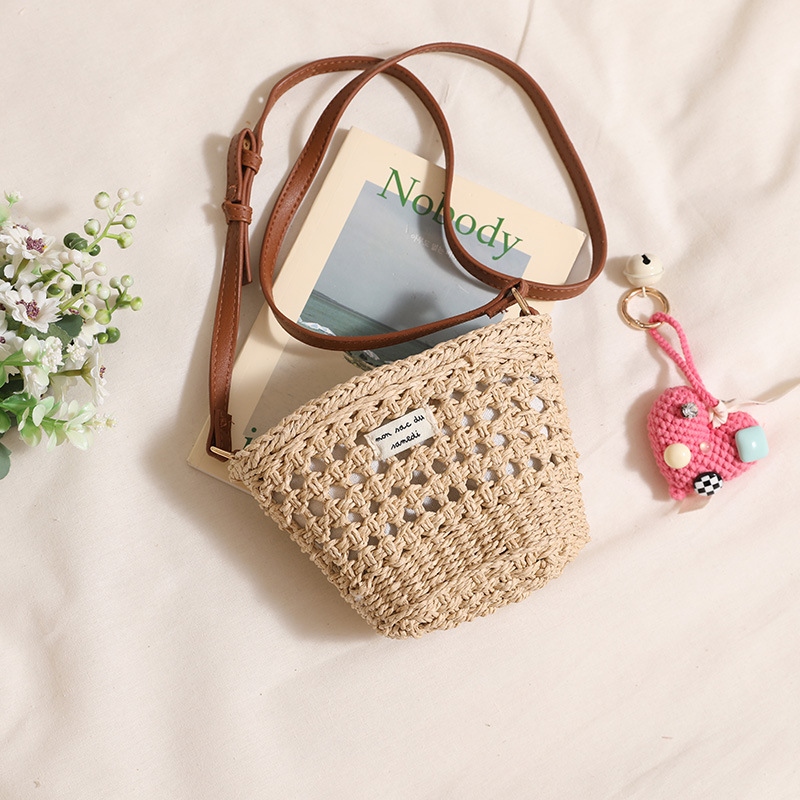 かわいい斜め掛けバケツ草編みバッグ新型シンプル草バッグ編みバッグ海辺のリゾートビーチバッグ百合藤編みバッグ