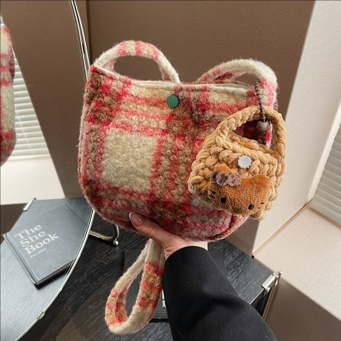 冬季新款复古毛绒女士单肩包潮流百搭逛街斜挎包简约大容量托特包